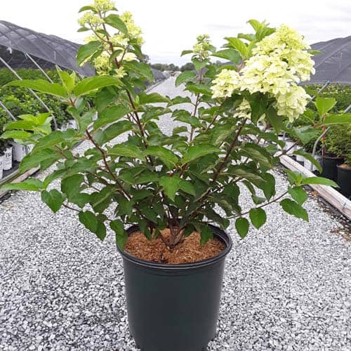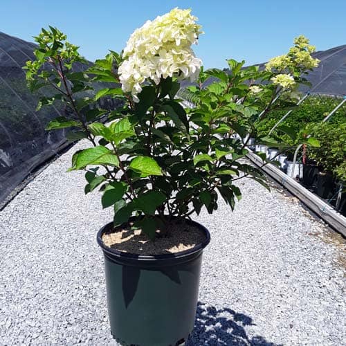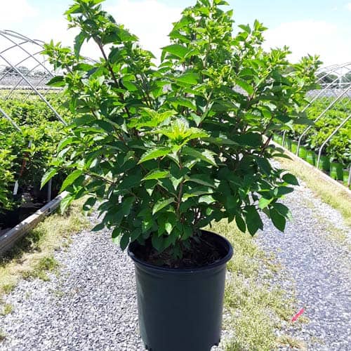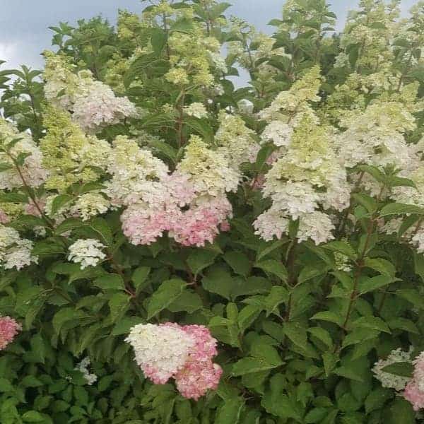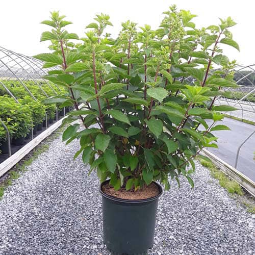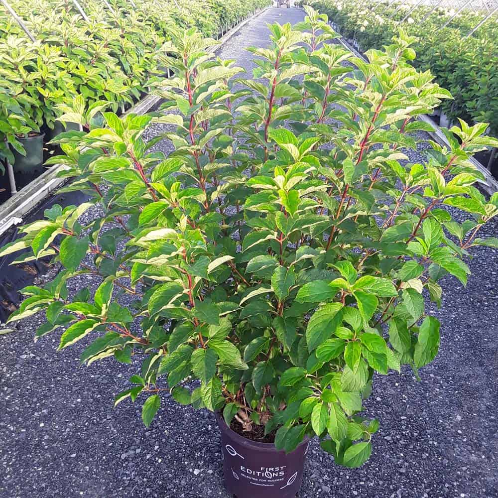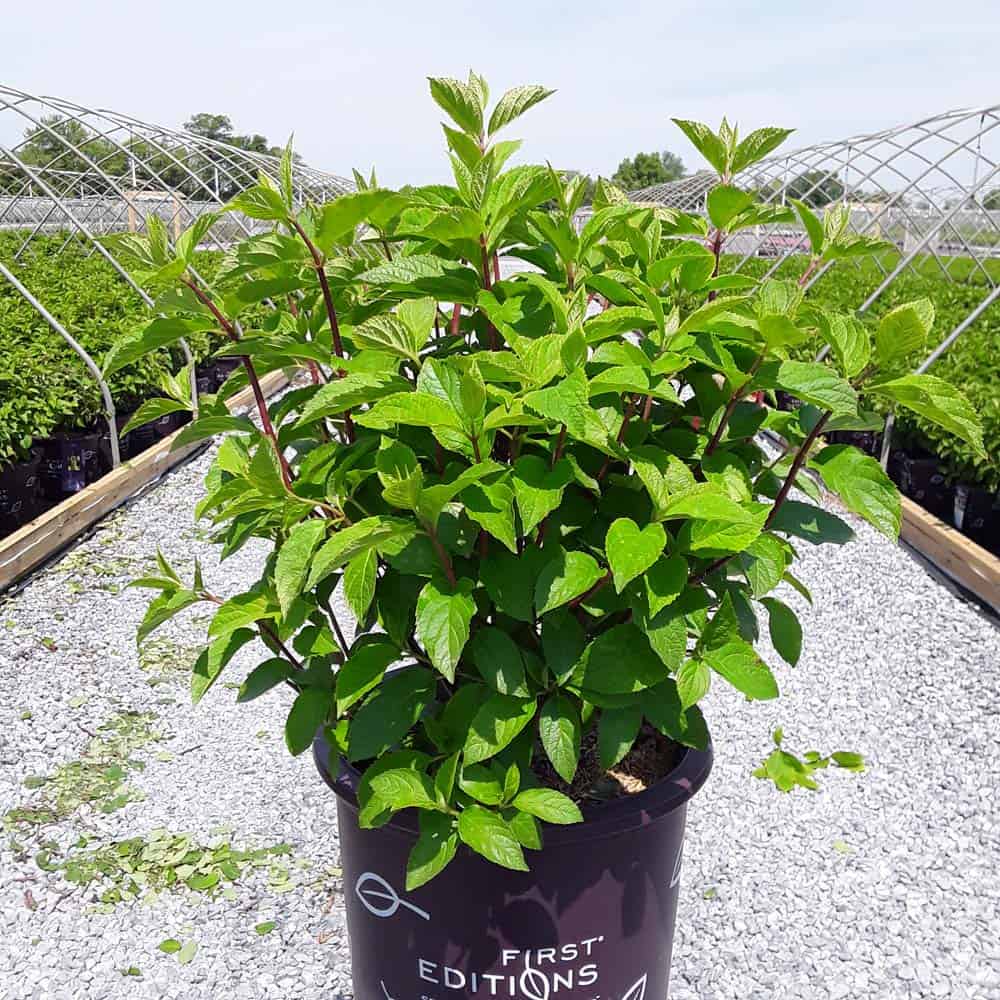 "This variety has abundant, long lasting, rounded flower heads that start white and progress to pink, intense raspberry red and finally wine red. Flowers start blooming in July and take on red coloration early in the season. Flower color is best in the fall when night temperatures are 10 degrees cooler than day temperatures." First Editions, Bailey Nurseries [Hydrangea]