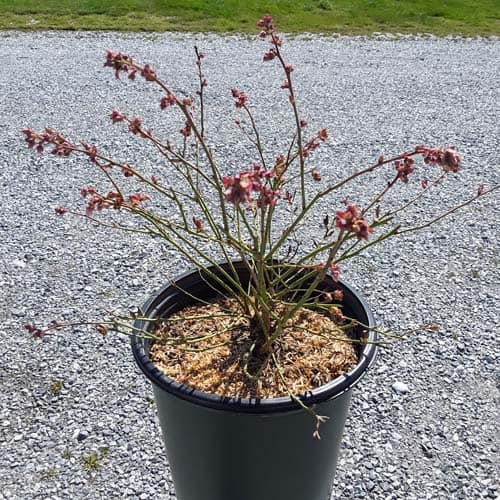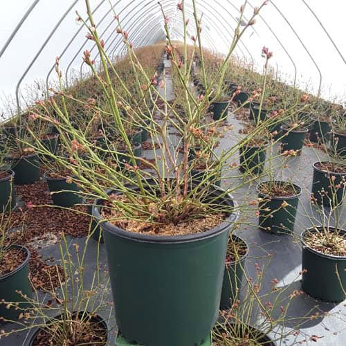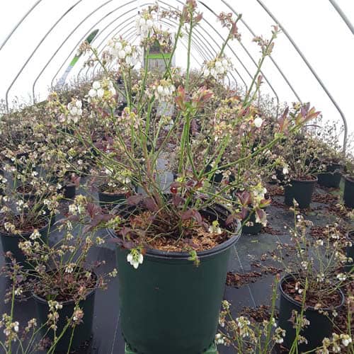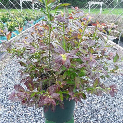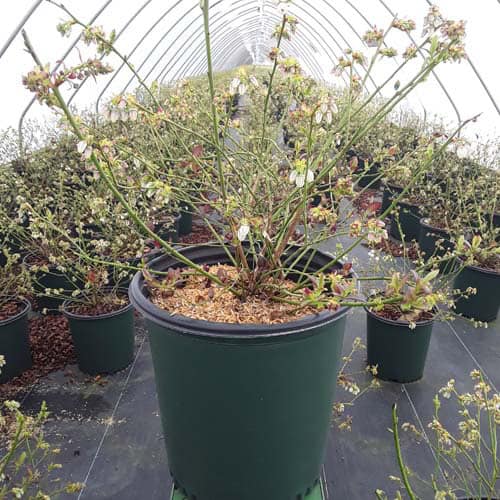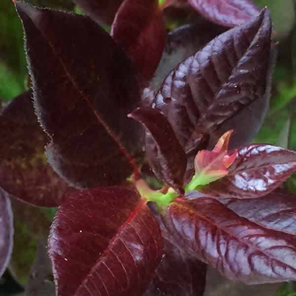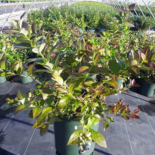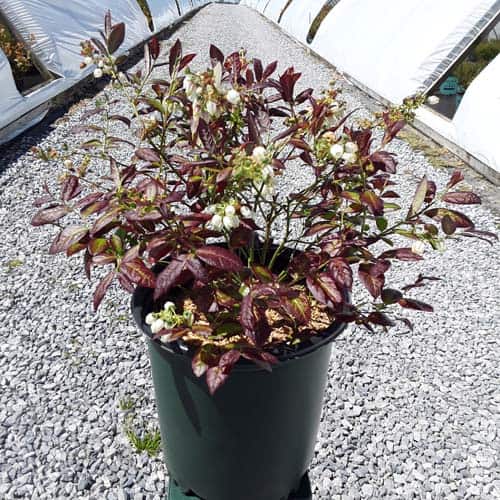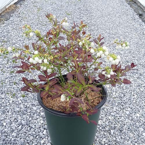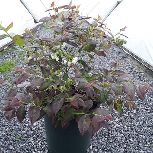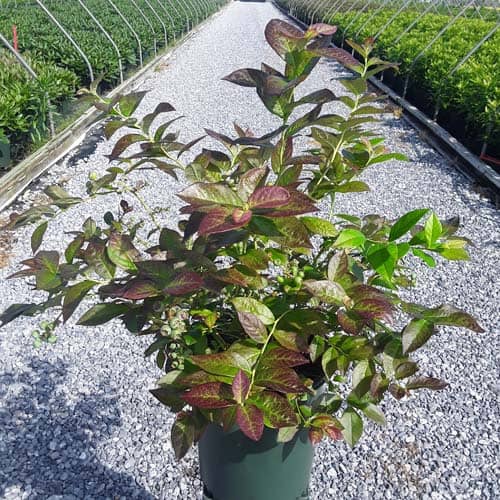 "Cabernet Splash is a chance sport of Vaccinium ‘Toro’. Its new foliage emerges a deep, dark, cabernet color, then mottles cabernet-green as it matures. Cabernet Splash produces an abundance of delicious, medium sized fruits." Briggs Nursery [Vaccinium]