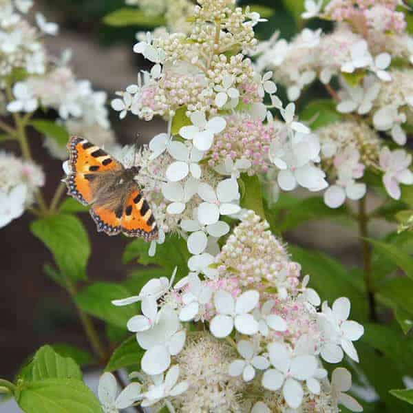 This is a dense, compact paniculata hydrangea with lightly scented flowers in shades of green, pink, and white. Its blooms can grow to 12", are long lasting, and bloom well into the fall. Easy to grow. [Hydrangea]