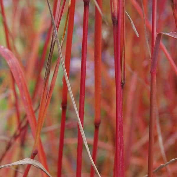 Green foliage begins turning red in summer, dark red in autumn, and scarlet after frost. A tough, native selection that is drought and salt tolerant. [Andropogon]