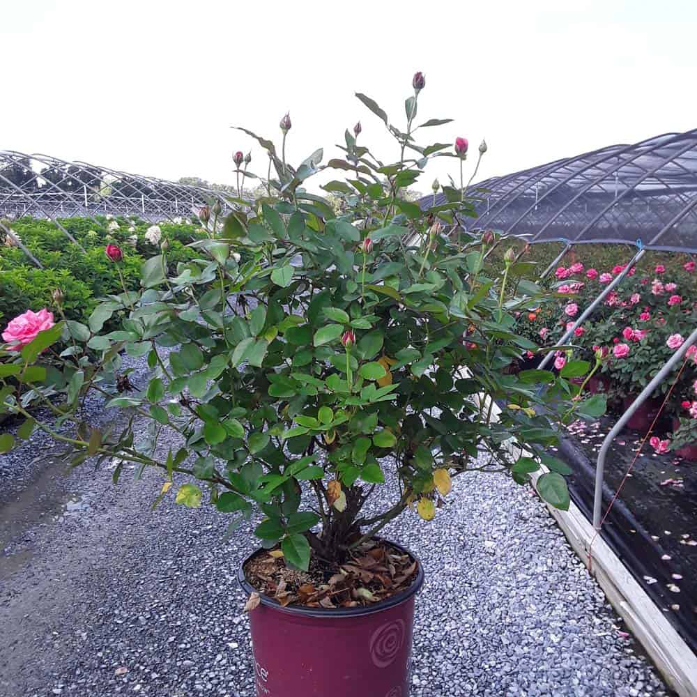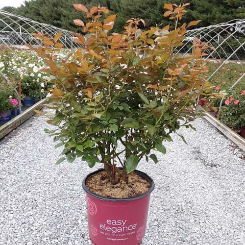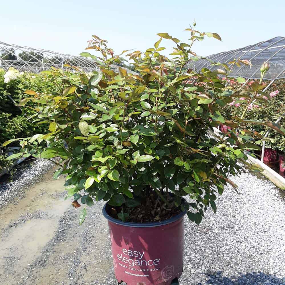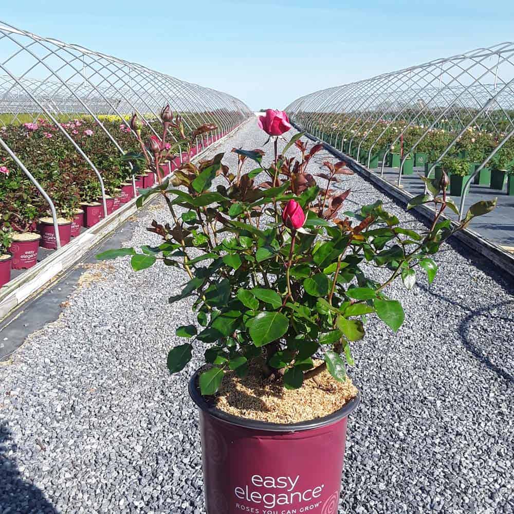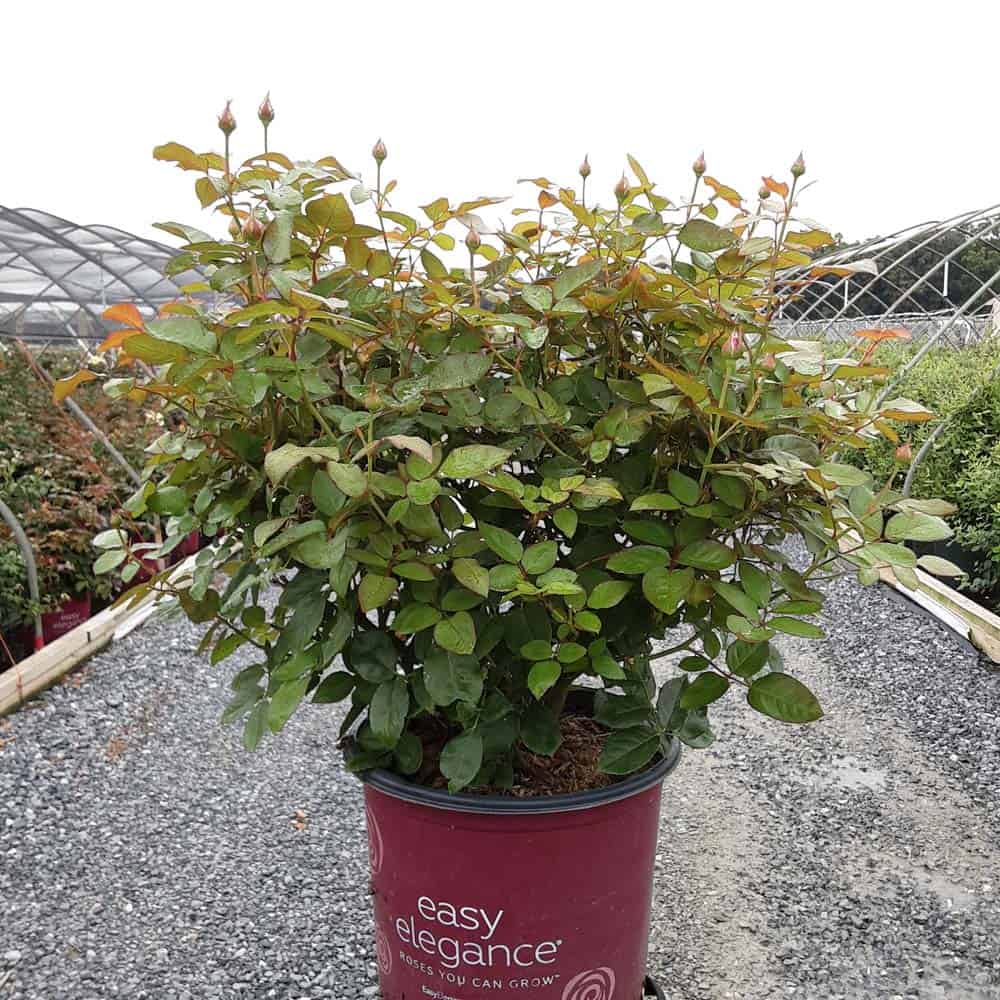 A charming Easy Elegance® selection with deep pink buds that open to paler pink Hybrid Tea type flowers, produced in small clusters it flowers reliably from early summer to frost. This low maintenance, easy to grow variety has glossy, green foliage with excellent disease resistance. [Rosa]