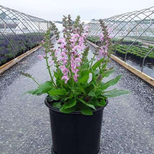 "The word fashionista is often used to describe someone who is constantly on the cutting edge of beauty, representing current fashion trends. Likewise, this collection of Perennial Salvia from Walters Gardens hybridizing represents the cutting edge of perennial fashion, with big, bold blooms in an array of chic and stylish colors. 'Moulin Rouge' has incredibly dark, deep rose buds burst open to huge, rosy pink flowers. The deepest shade of pink in the collection to date." Walters Gardens [Salvia]