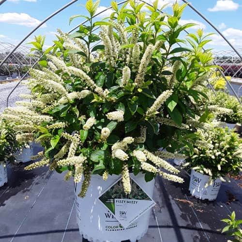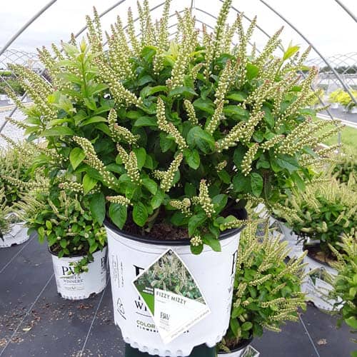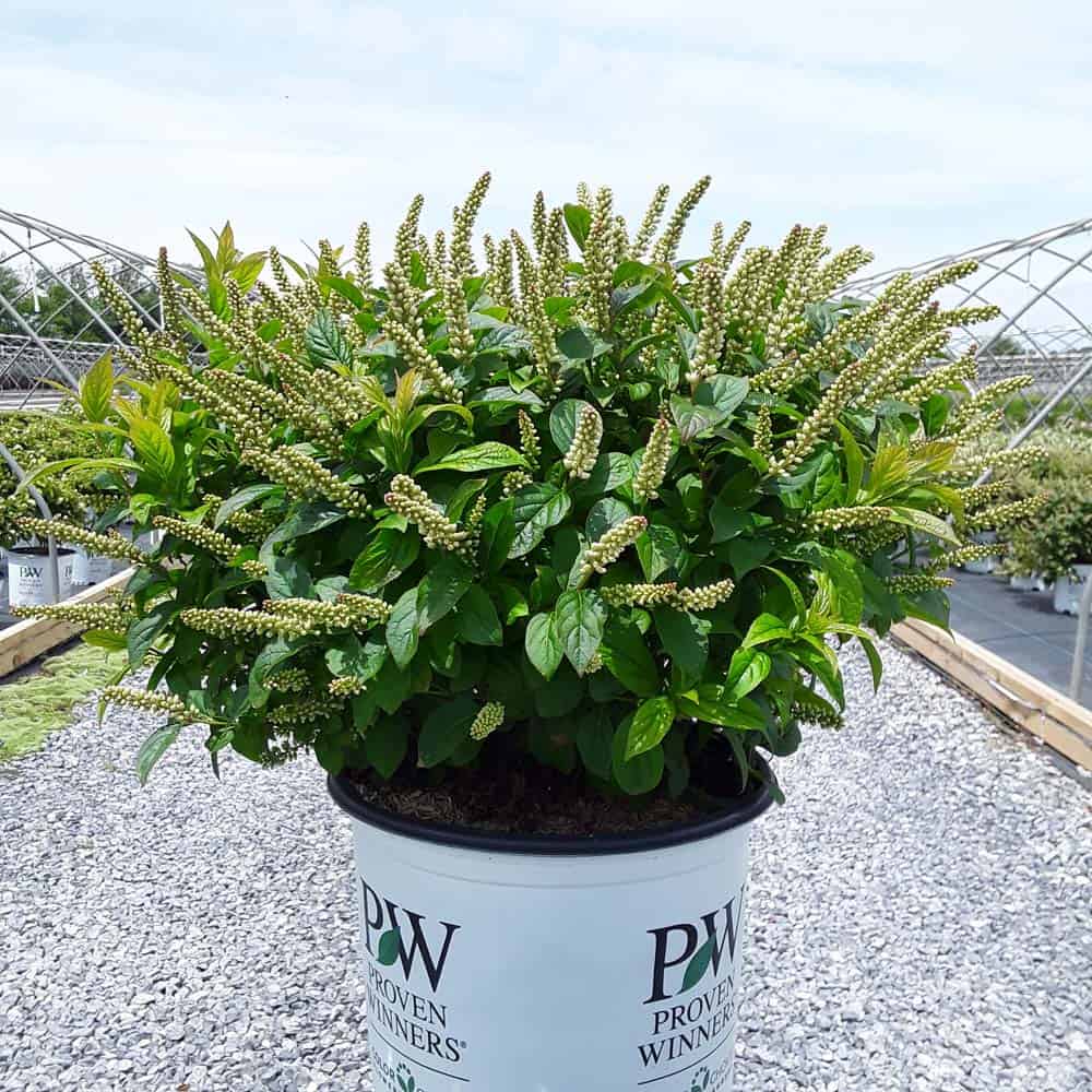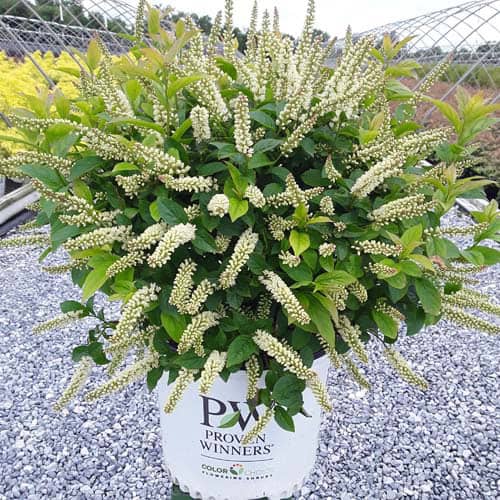 "A sweetspire that literally stands out in the landscape! Its abundant upright flower spikes are bright white and carry a light, lovely fragrance that attracts people and pollinators. An early summer bloom time helps bridge the gap between the seasons seamlessly and its thick, dark green foliage is handsome enough to carry the show for the rest of the season. With a petite size, you'll be able to use it in any size garden." -Proven Winners [Itea]