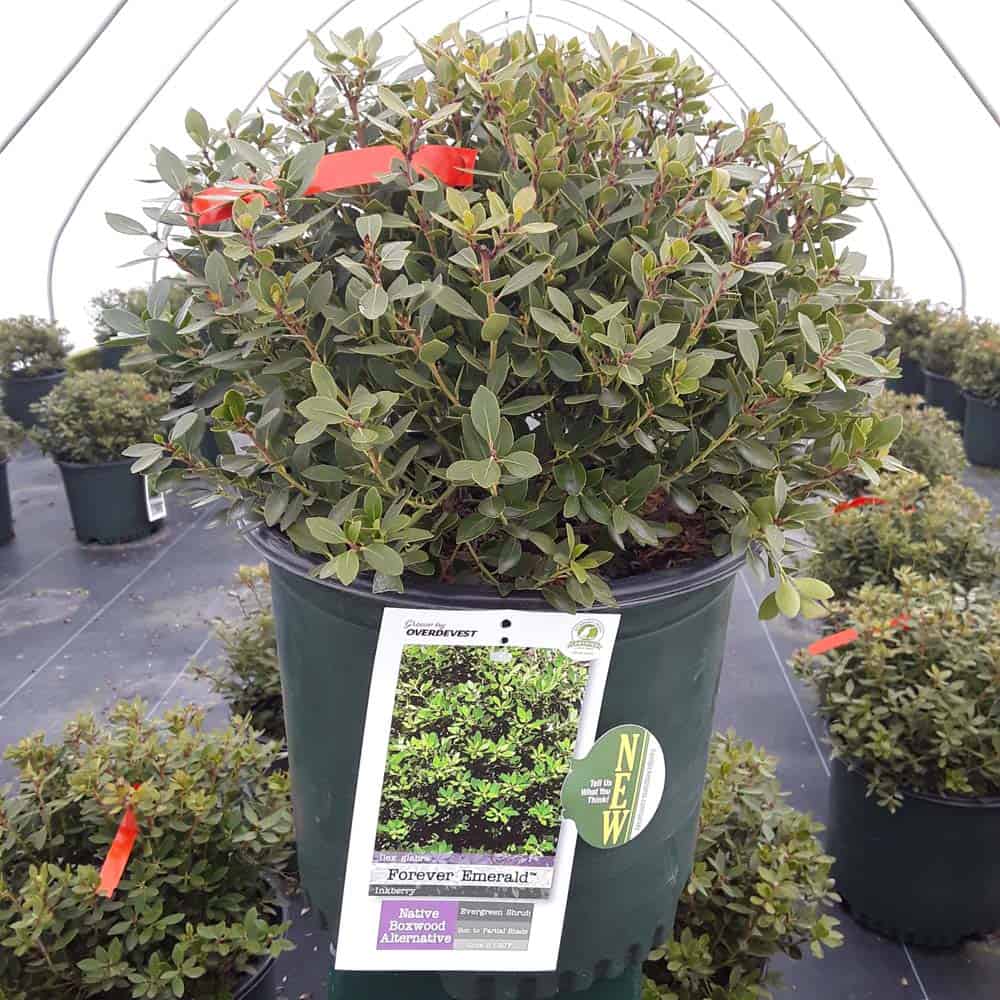 "Forever Emerald" is a compact inkberry holly. The leaves, much smaller than a typical inkberry, cover rounded, well-branched plants that stay green all the way to the ground! Planted along borders or in the front of a garden, they show their color all year.
