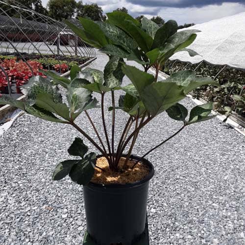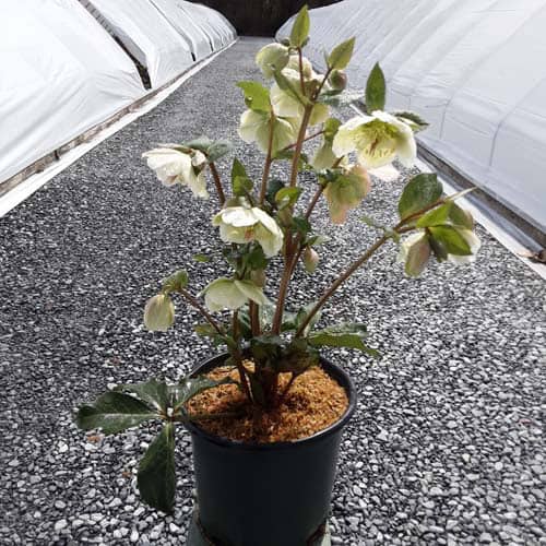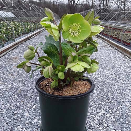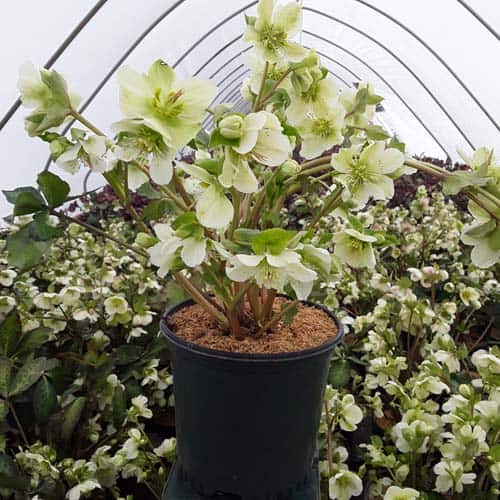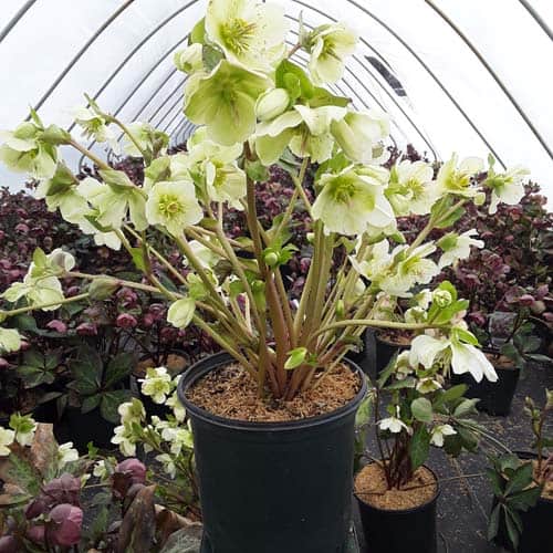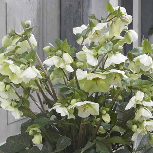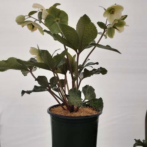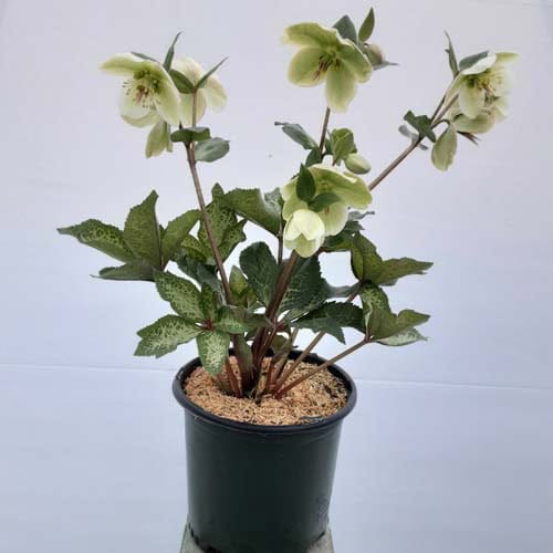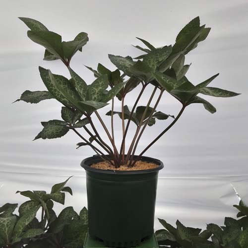 Silver-veined dark green leaves topped in late winter with a stunning show of stalks of pure white, out-facing flowers.Like all of the Frostkiss® hellebores, the evergreen foliage is attractive year round and the beautiful spring blooms appear later than other hellebores. [Helleborus]