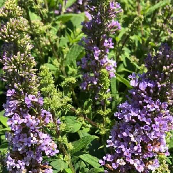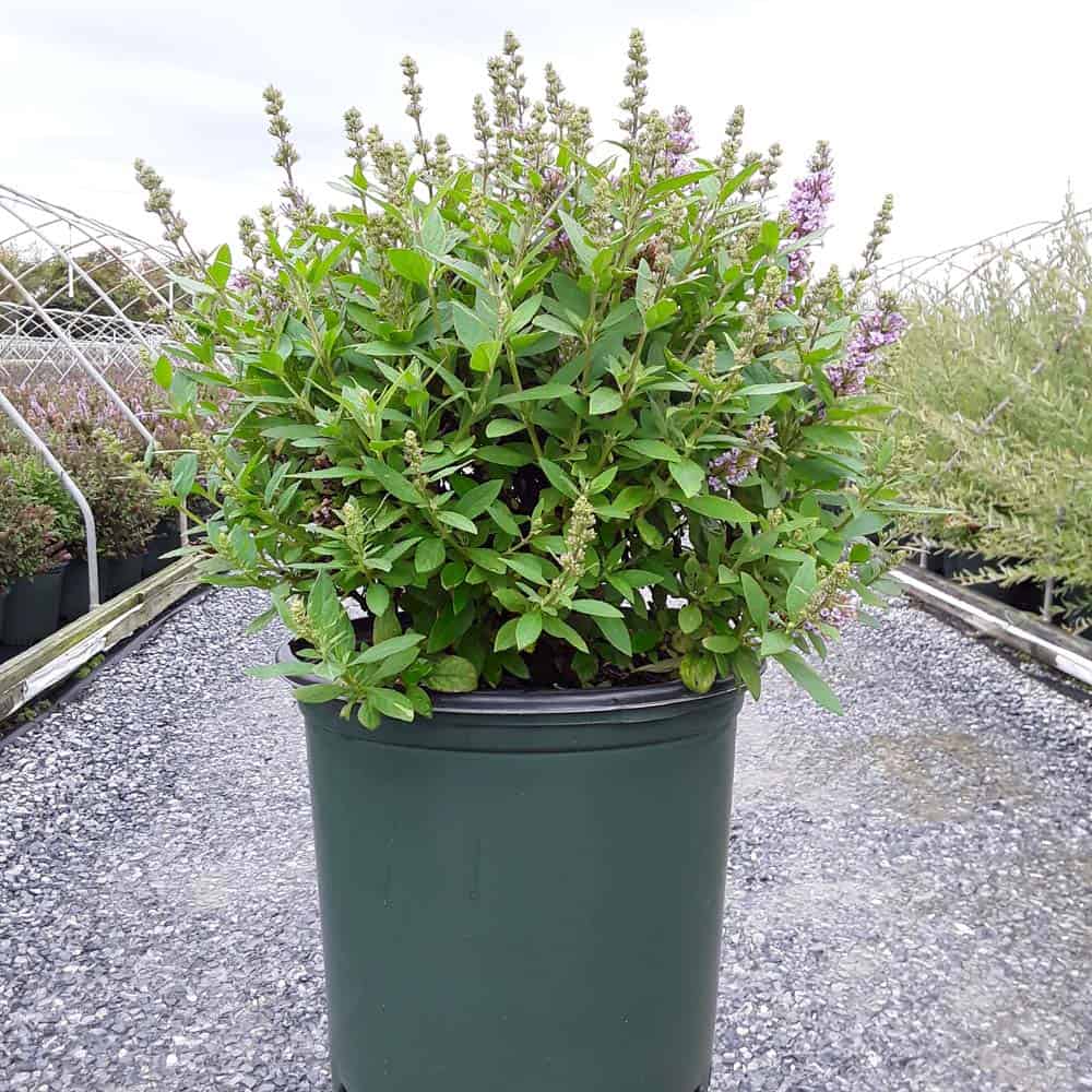 This noninvasive, compact variety produces large clusters of purple blooms from summer into fall. A low maintenance plant that attracts butterflies and hummingbirds, its compact size makes it perfect for patio containers as well as borders. [Buddleia]