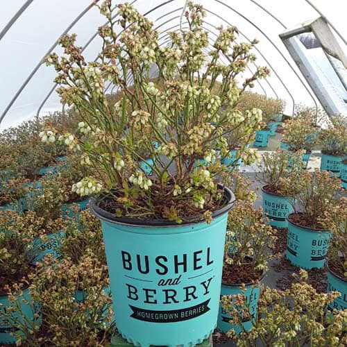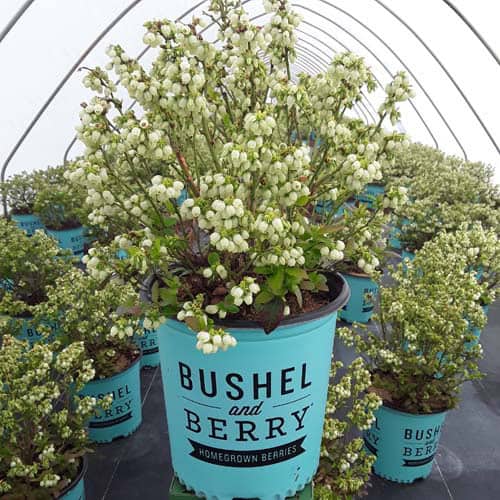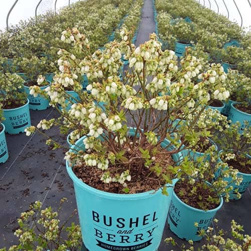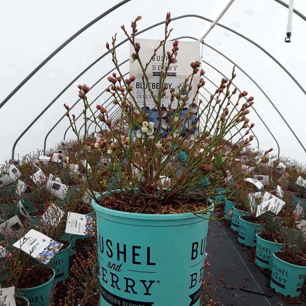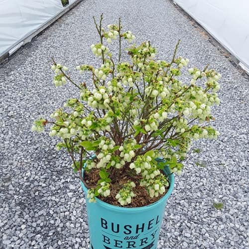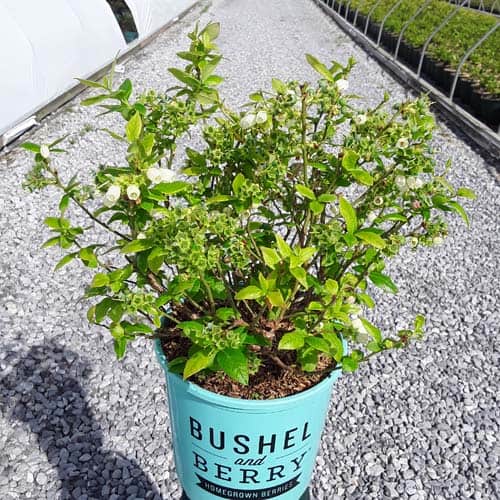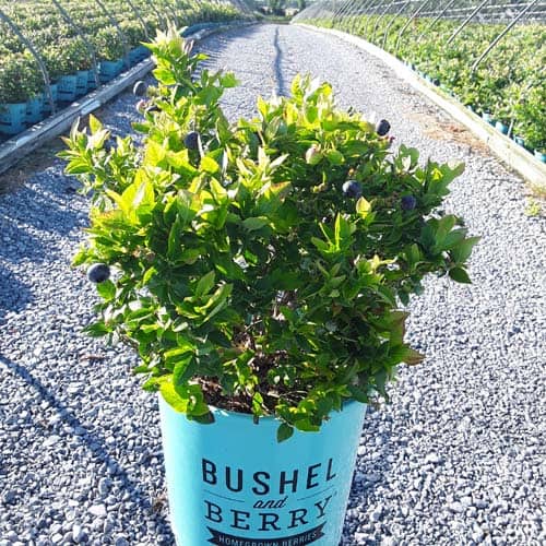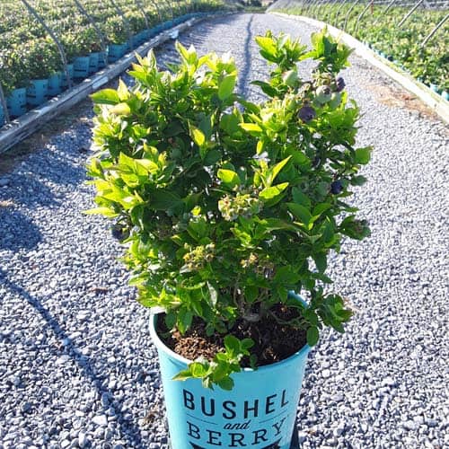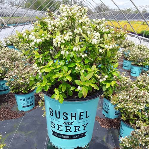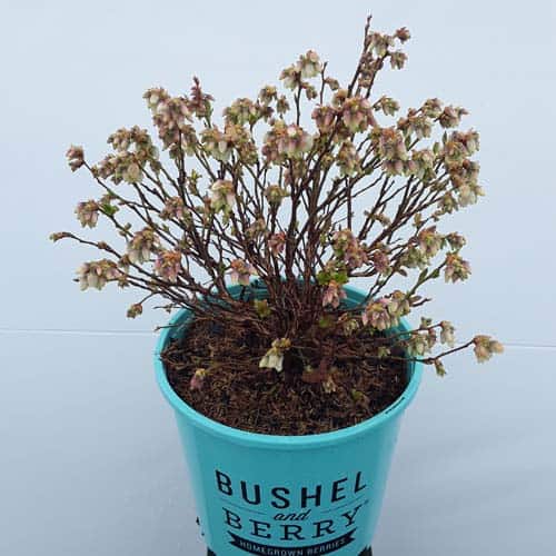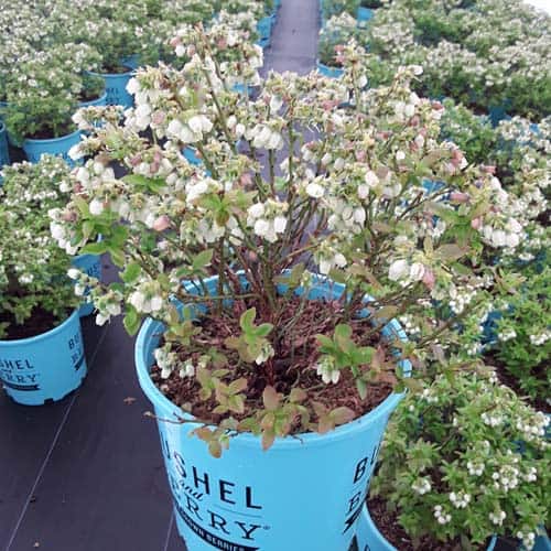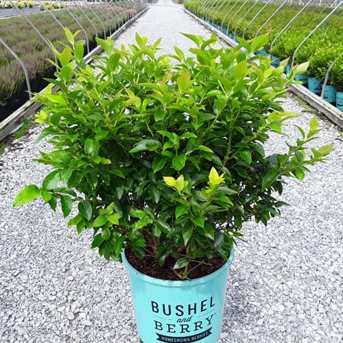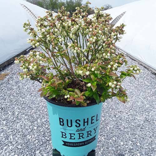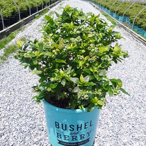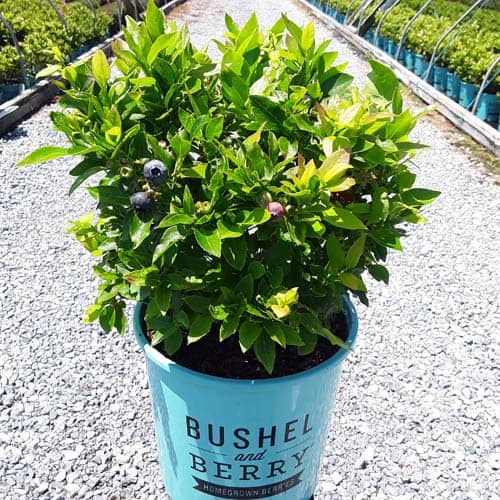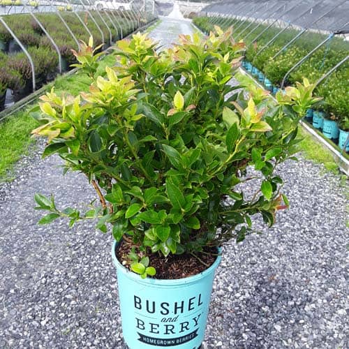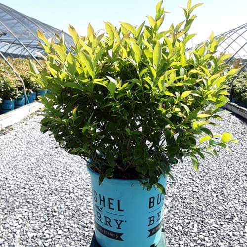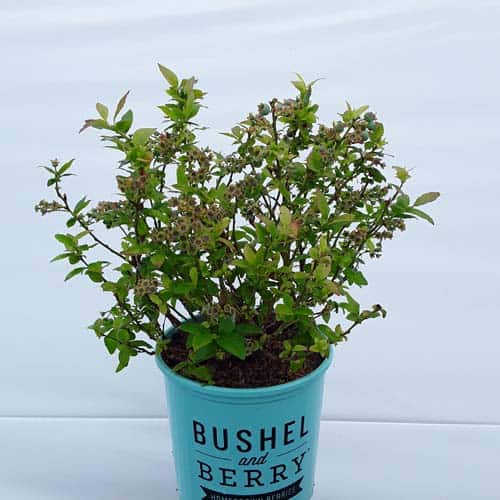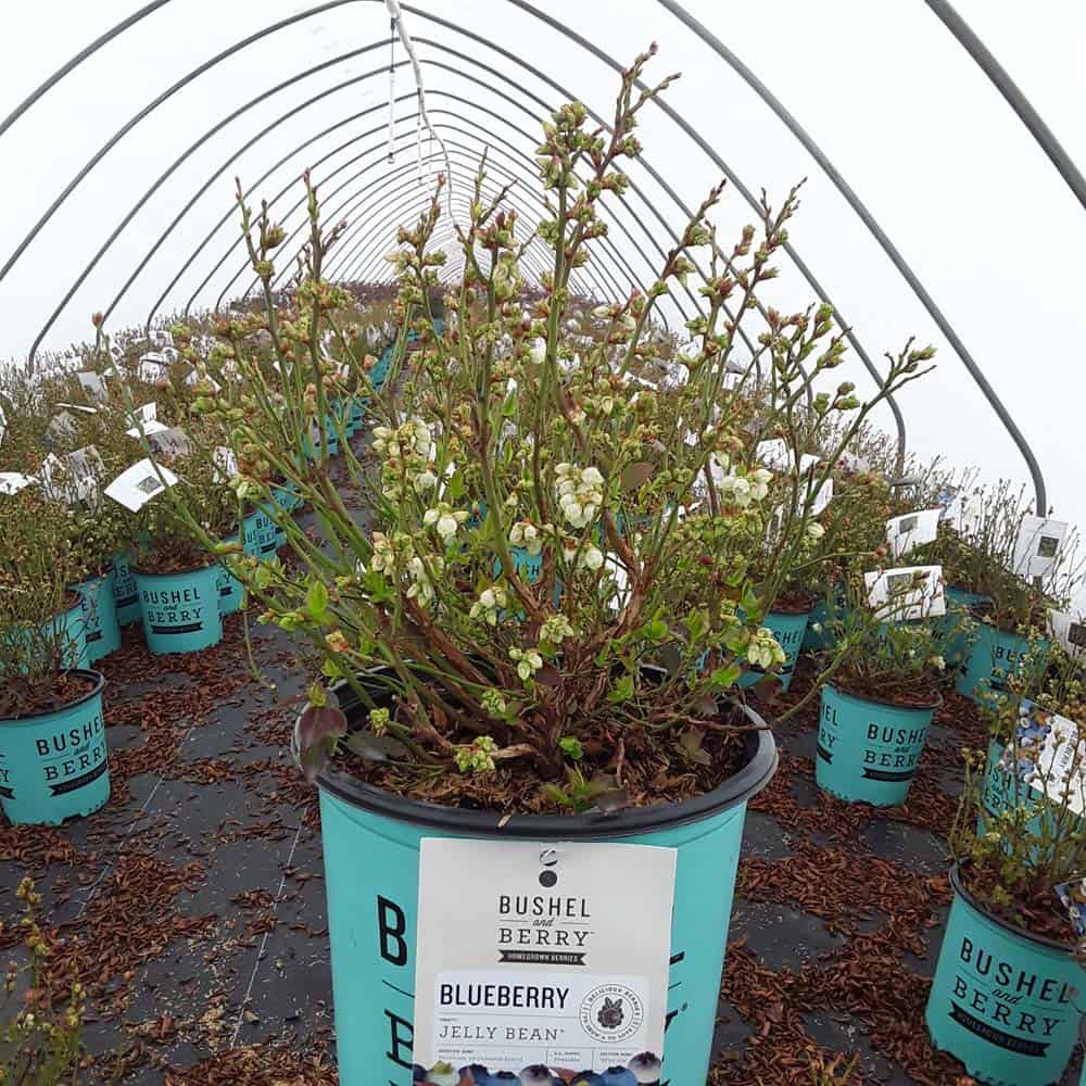 "Jelly Bean® has large, flavorful blueberries mid-summer that taste like sweet, homemade blueberry jelly. The foliage is unlike other blueberries and has unique, elongated green leaves with highlights of red in cooler climates. Try a mini-hedge along a pathway, in the landscape or in decorative patio containers." -- Bushel and Berry® [Vaccinium]