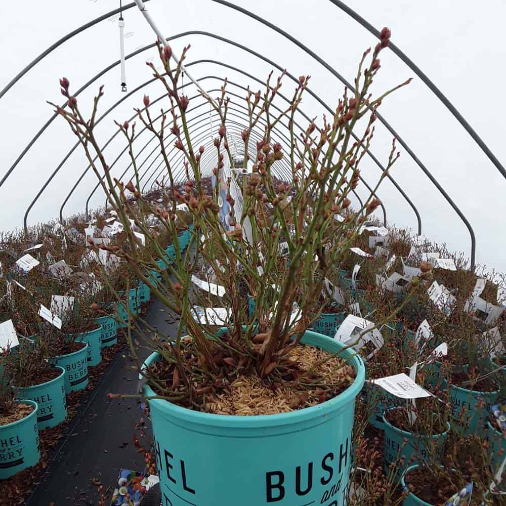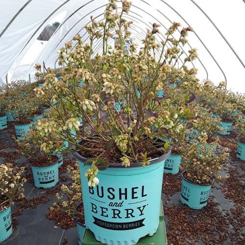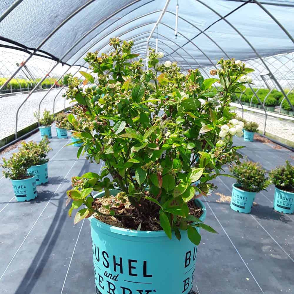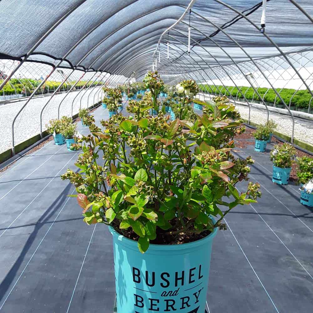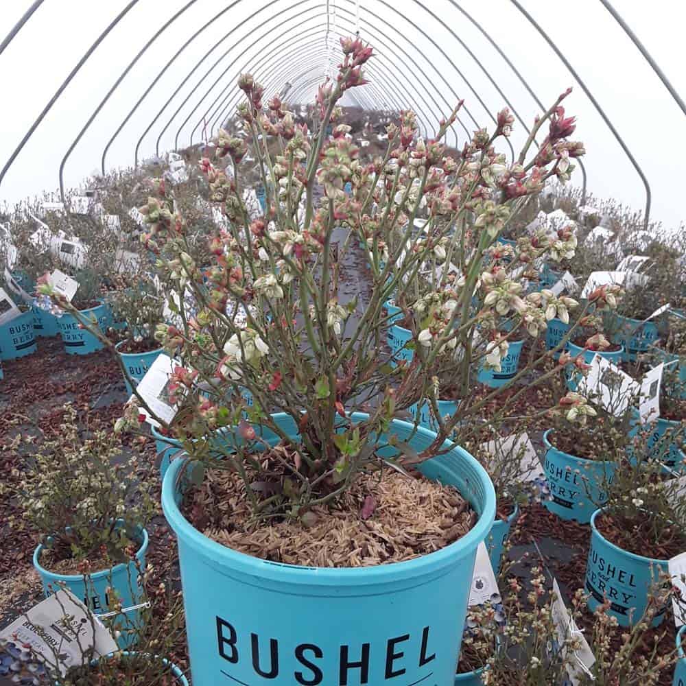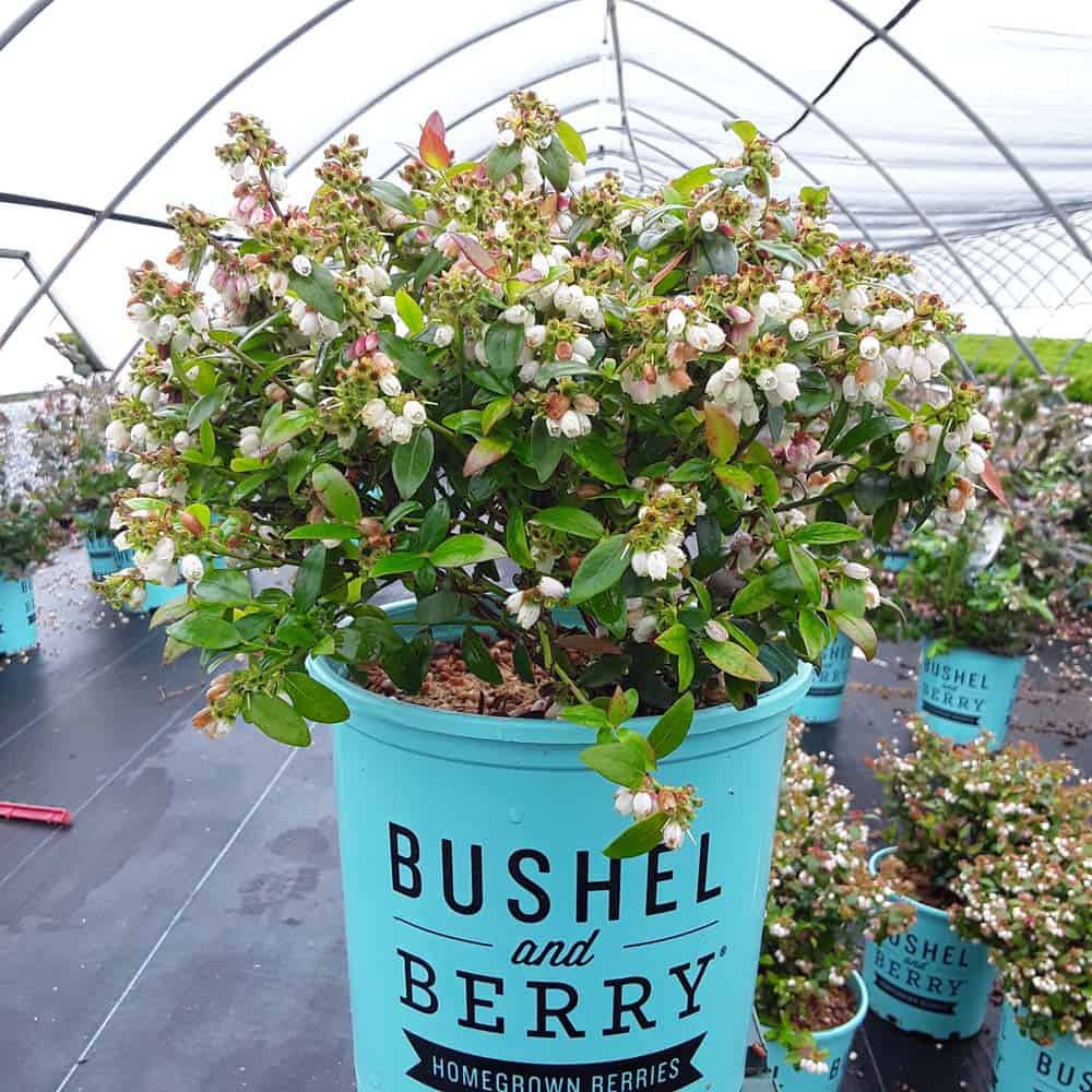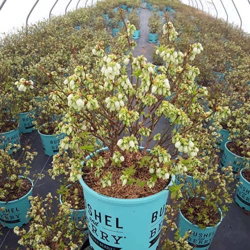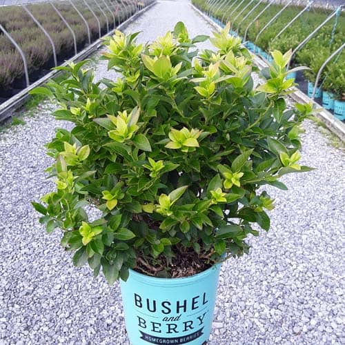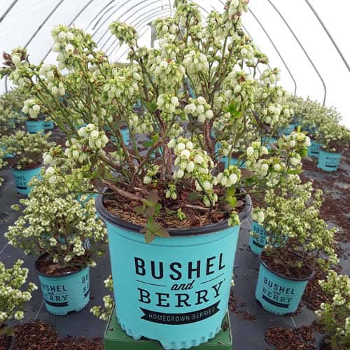 "Jelly Bean® has large, flavorful blueberries mid-summer that taste like sweet, homemade blueberry jelly. The foliage is unlike other blueberries and has unique, elongated green leaves with highlights of red in cooler climates. Try a mini-hedge along a pathway, in the landscape or in decorative patio containers." -- Bushel and Berry® [Vaccinium]