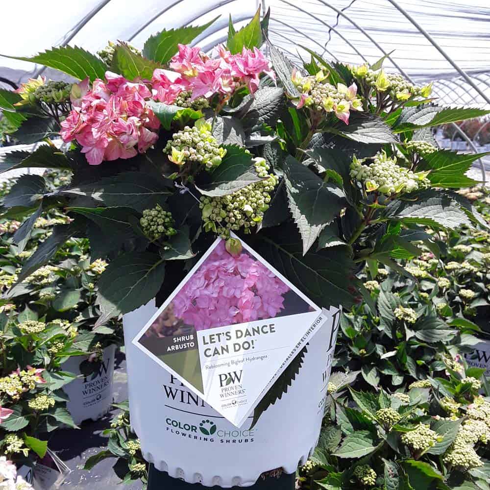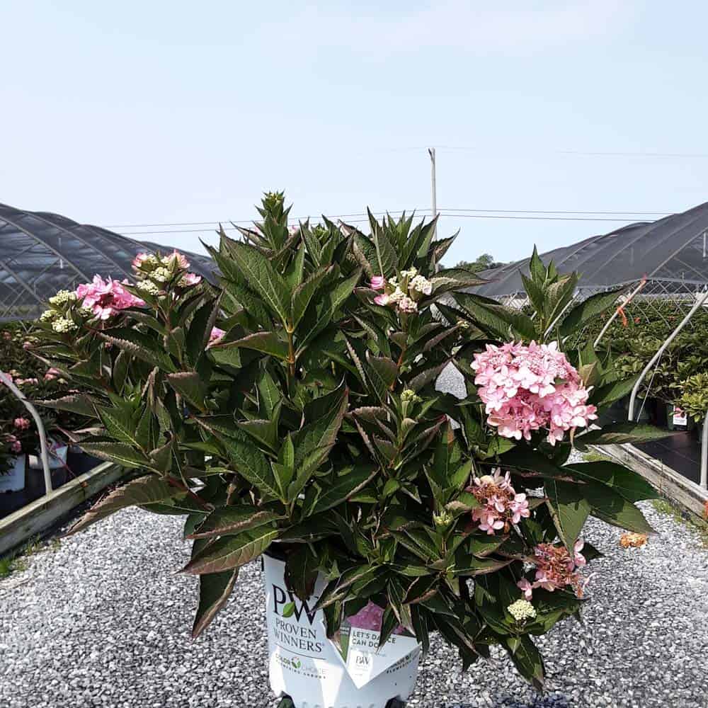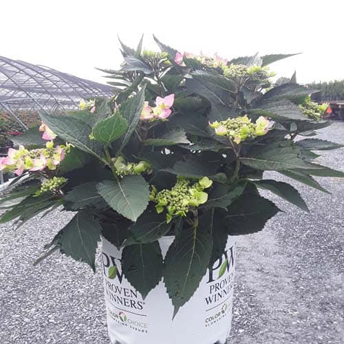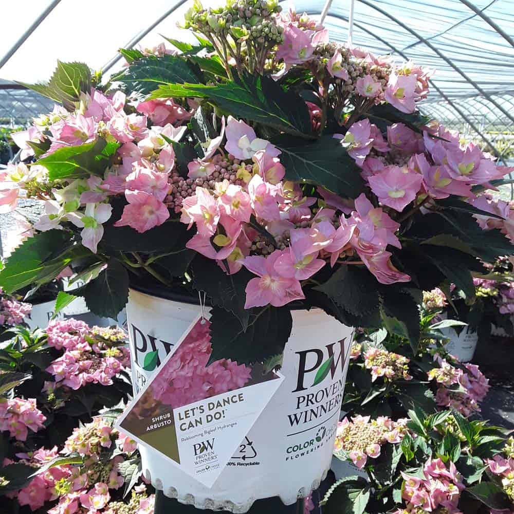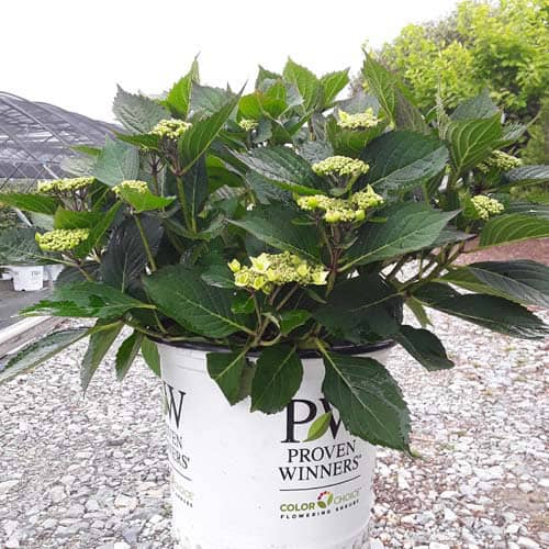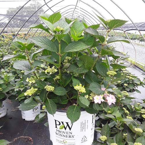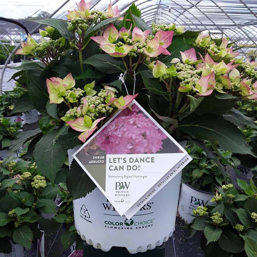 "Let's Dance Can Do!® hydrangea is an excellent rebloomer, requiring only a short period of growth in order to create new wood blooms. It also sets its flower buds along the entire length. This means that if this hydrangea is cut back or damaged by cold temperatures, those lower, old wood buds will still develop into flowers. It's a huge leap forward . Abundant, semi-double, star-like florets make the lacecap flowers very showy." - Spring Meadow Nursery [Hydrangea]