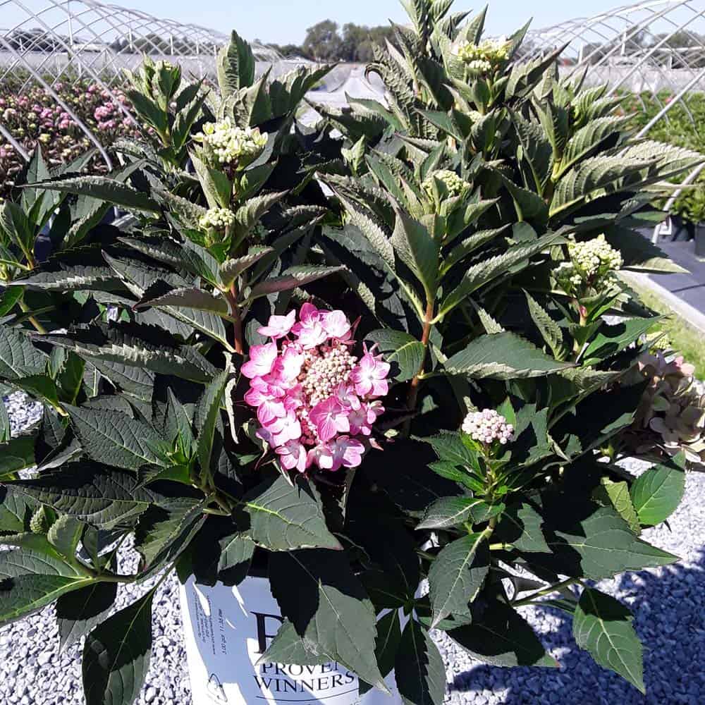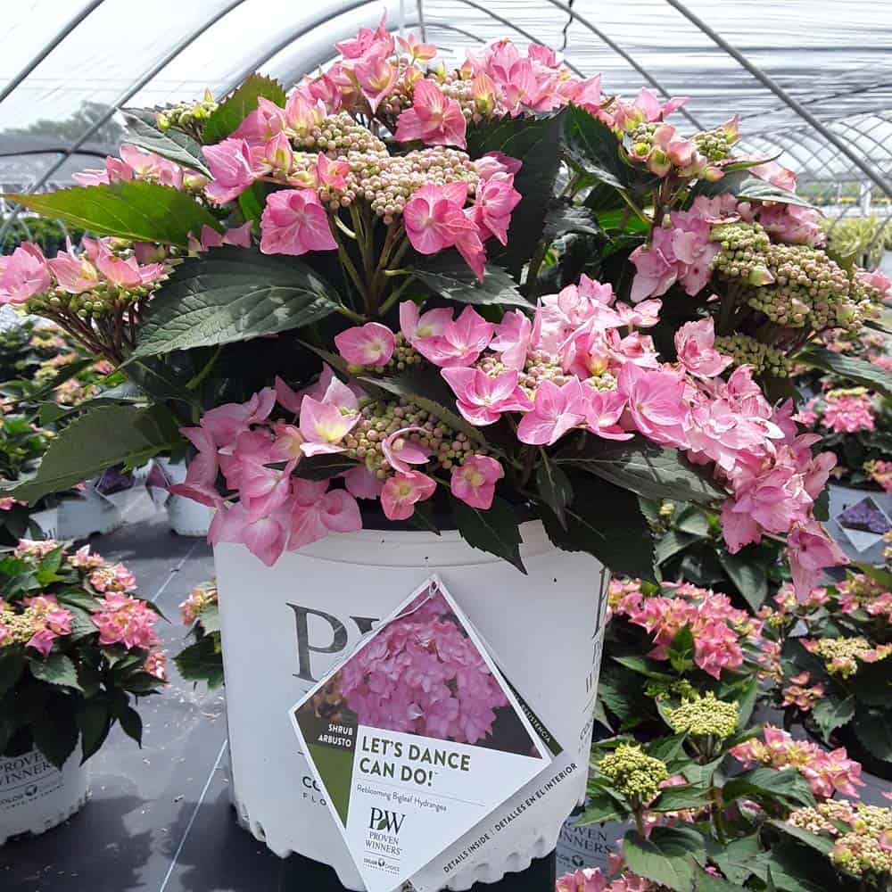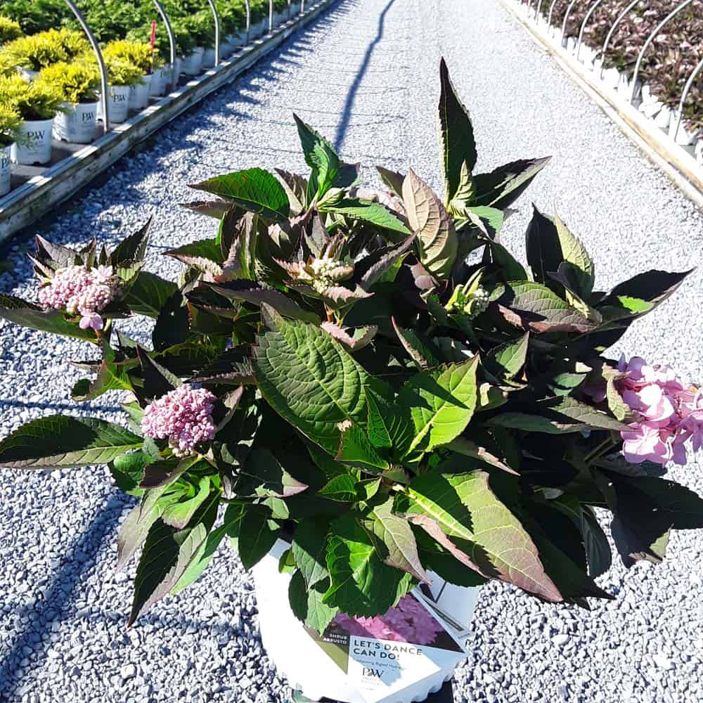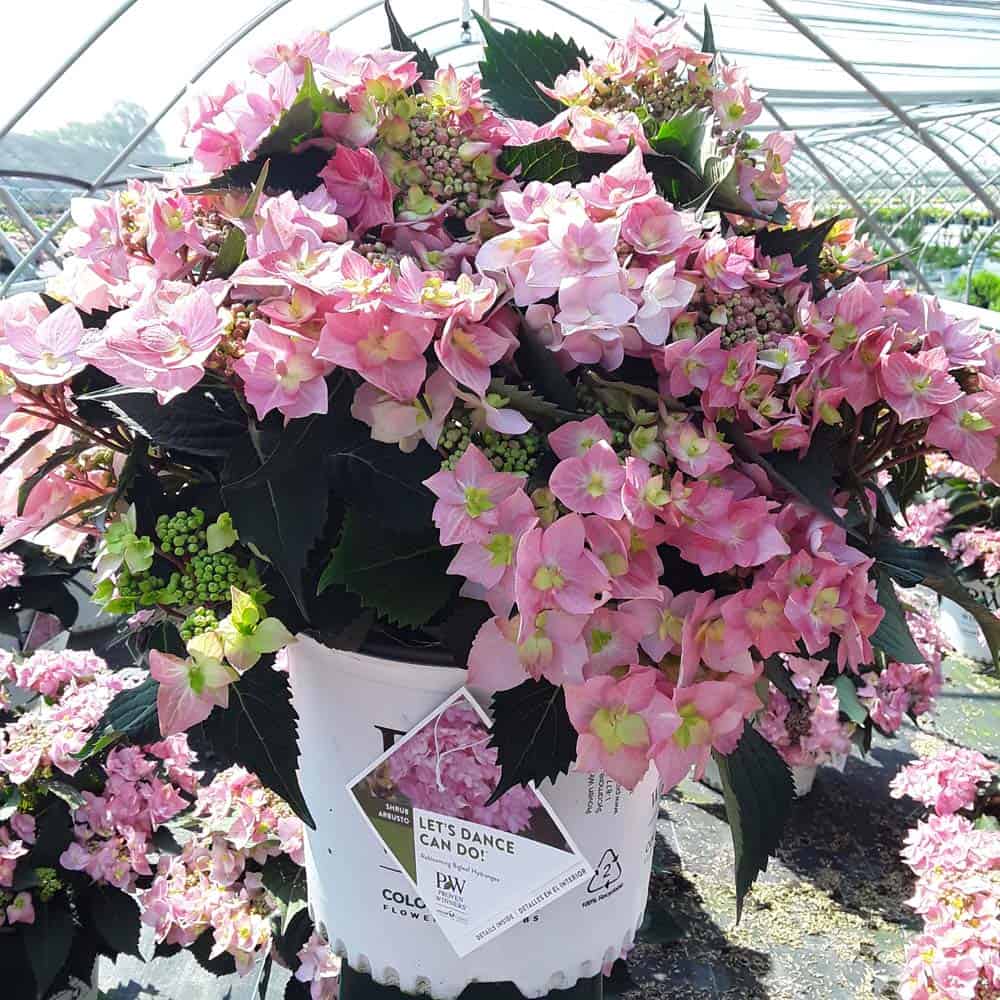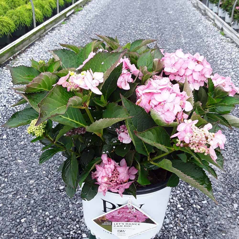 "Let's Dance Can Do!® hydrangea is an excellent rebloomer, requiring only a short period of growth in order to create new wood blooms. It also sets its flower buds along the entire length. This means that if this hydrangea is cut back or damaged by cold temperatures, those lower, old wood buds will still develop into flowers. It's a huge leap forward . Abundant, semi-double, star-like florets make the lacecap flowers very showy." - Spring Meadow Nursery [Hydrangea]