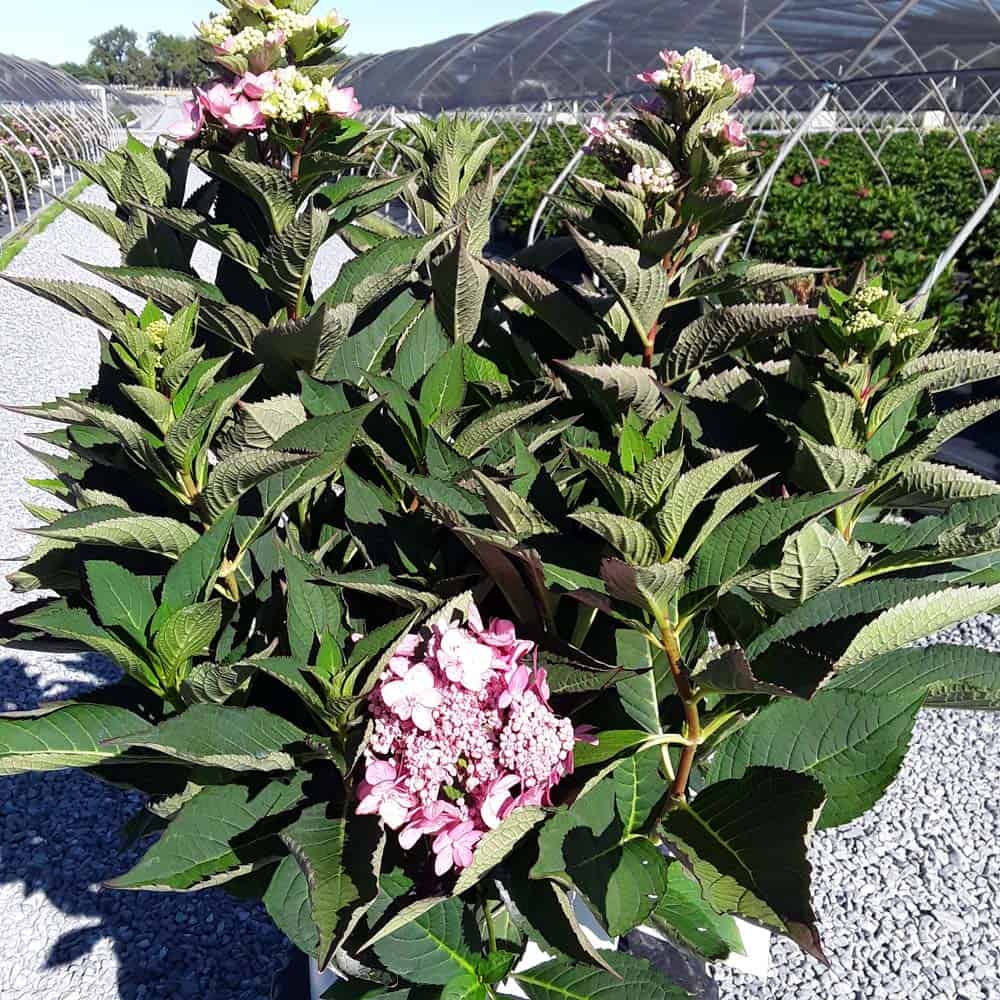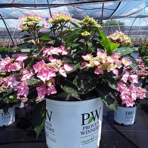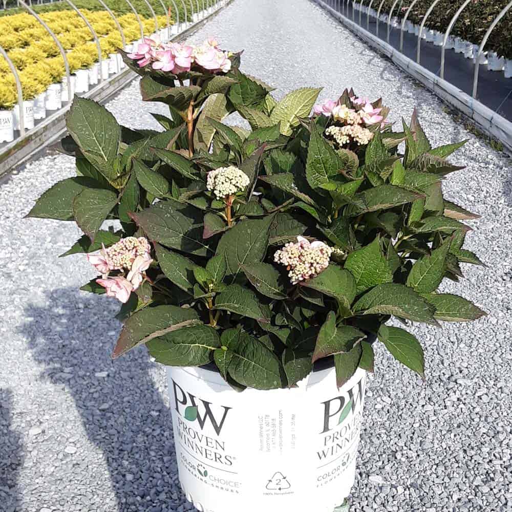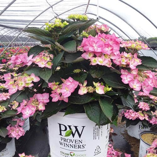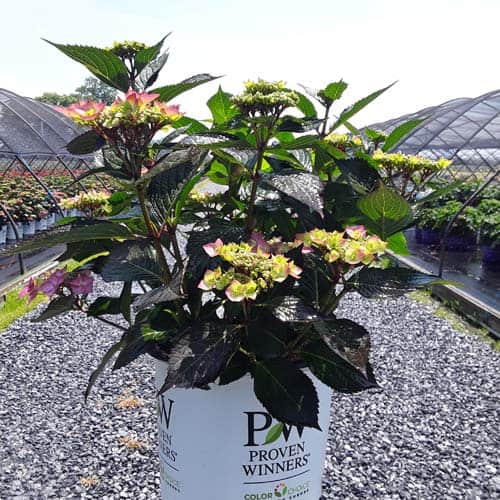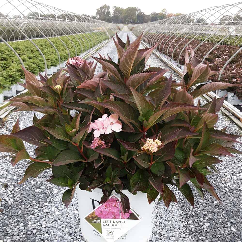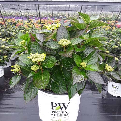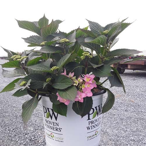 "Let's Dance Can Do!® hydrangea is an excellent rebloomer, requiring only a short period of growth in order to create new wood blooms. It also sets its flower buds along the entire length. This means that if this hydrangea is cut back or damaged by cold temperatures, those lower, old wood buds will still develop into flowers. It's a huge leap forward . Abundant, semi-double, star-like florets make the lacecap flowers very showy." - Spring Meadow Nursery [Hydrangea]
