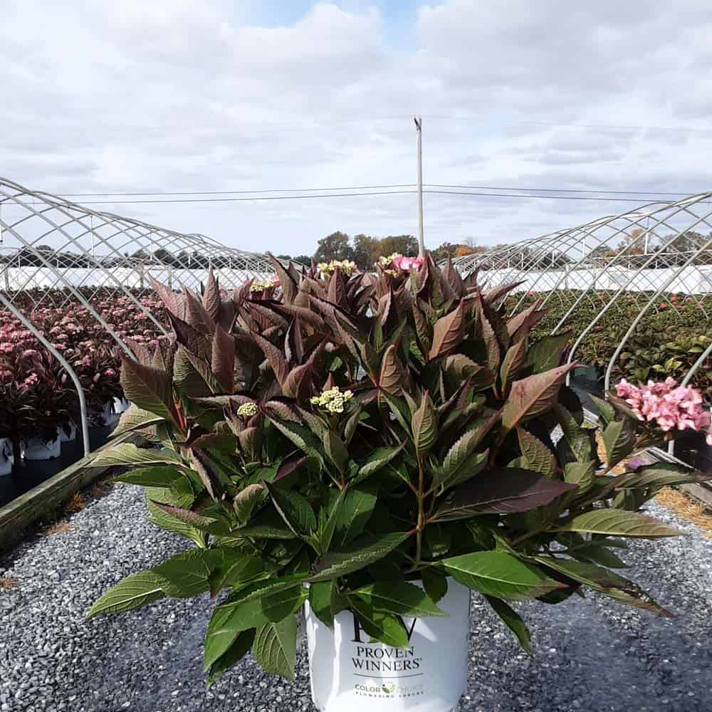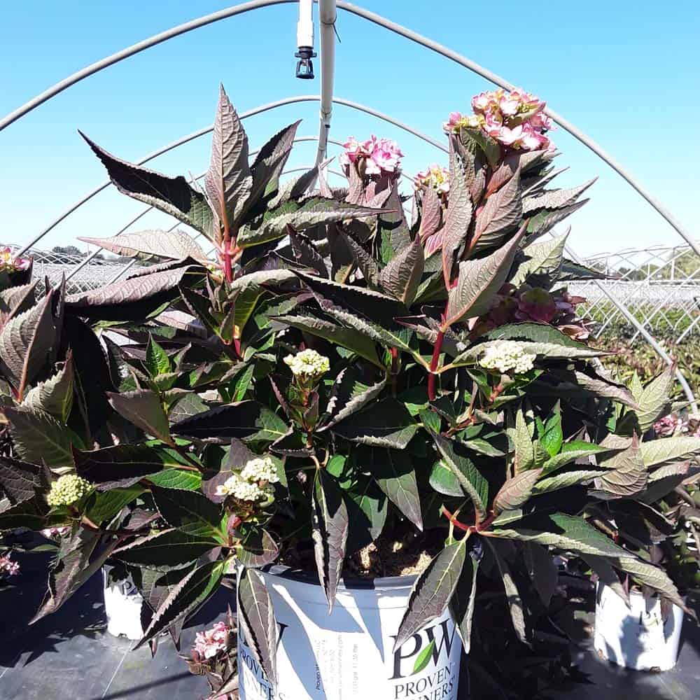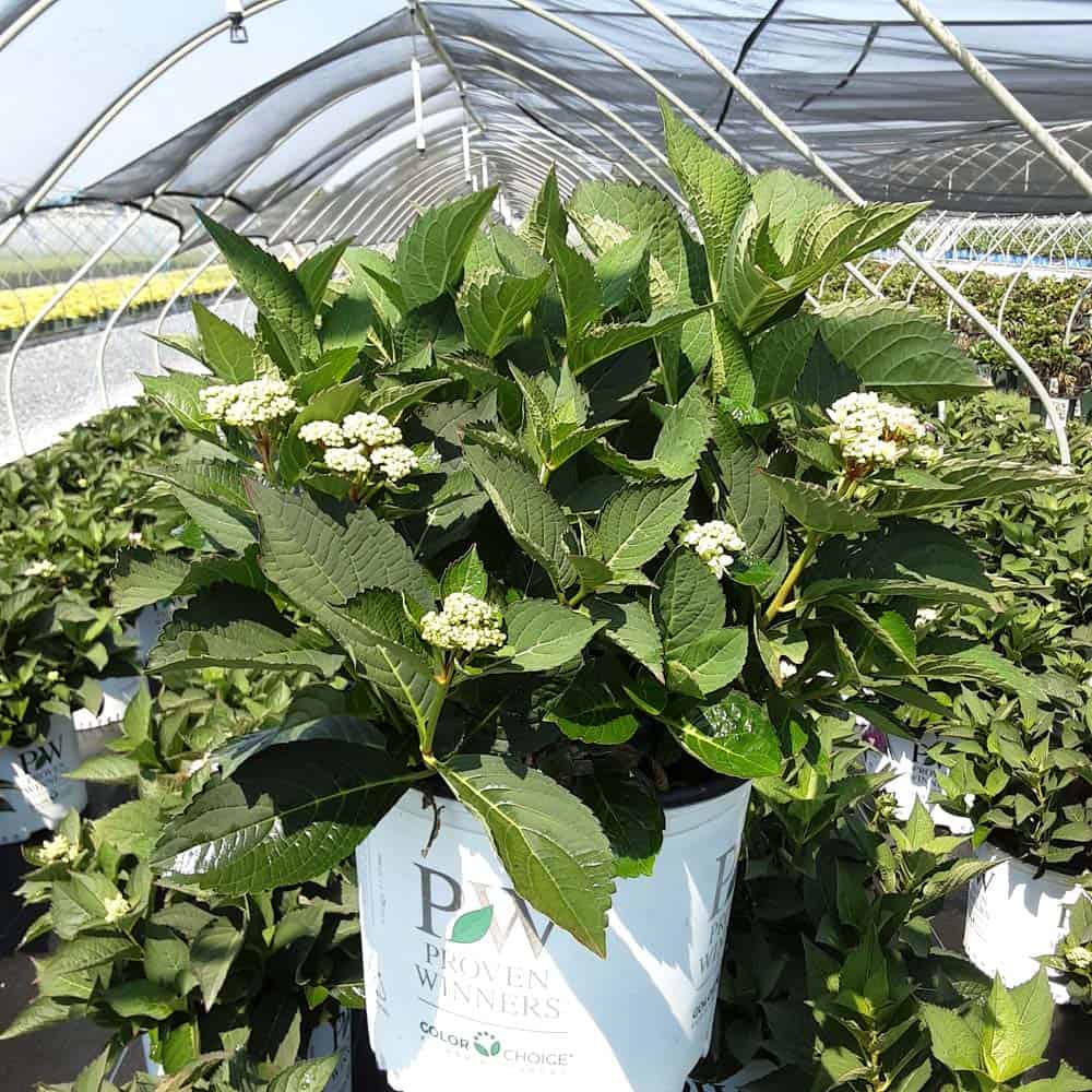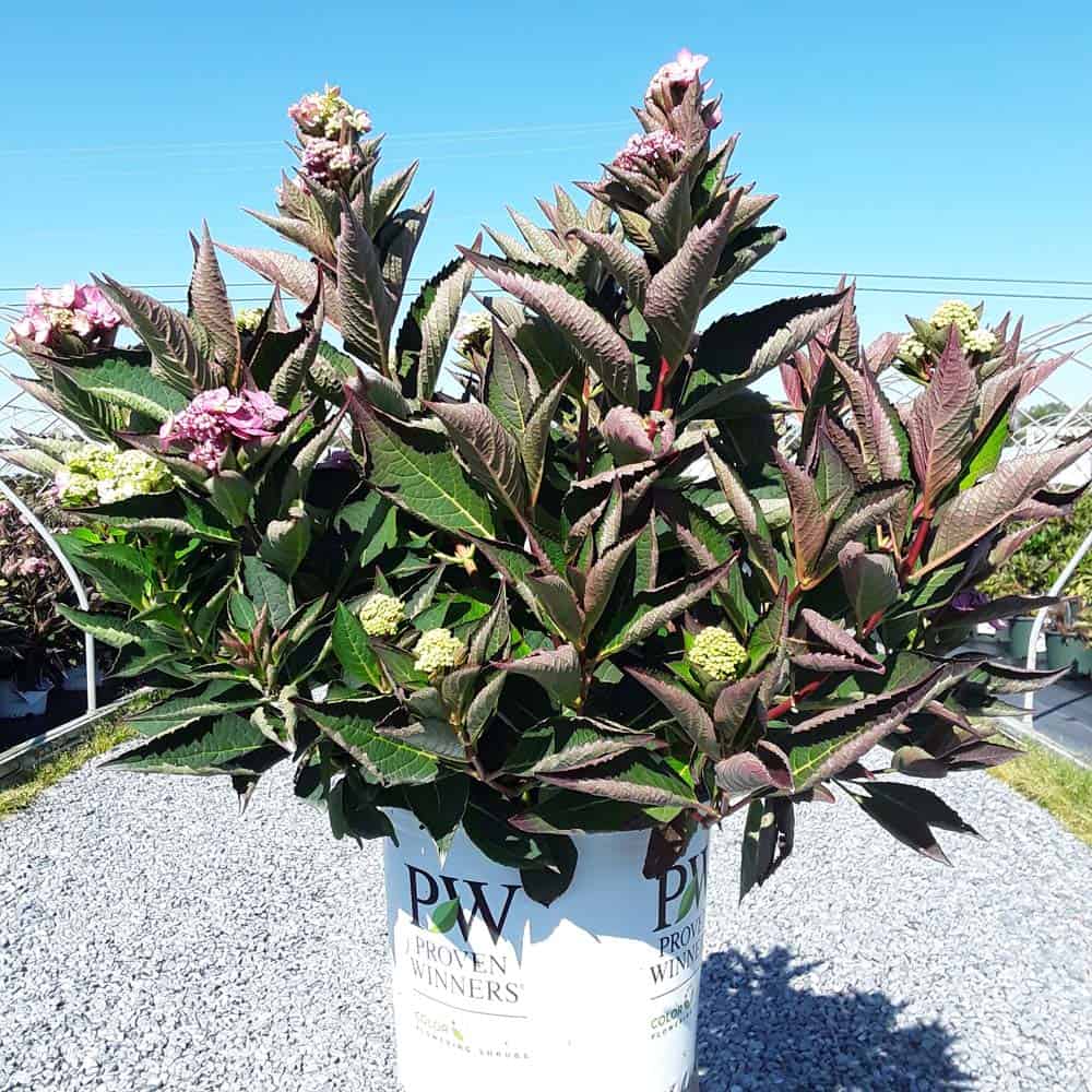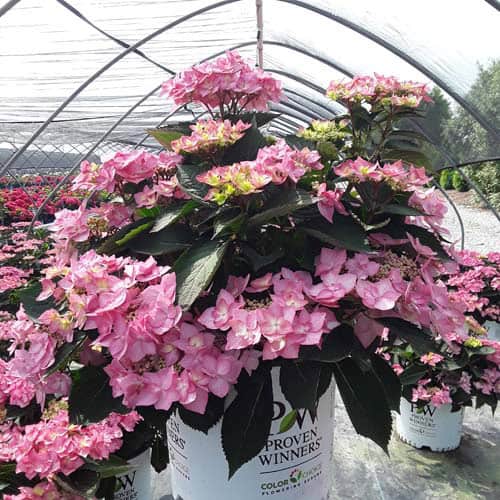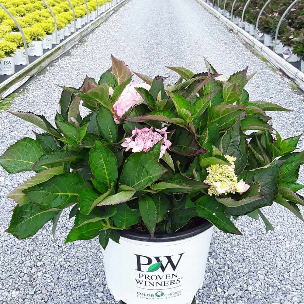 "Let's Dance Can Do!® hydrangea is an excellent rebloomer, requiring only a short period of growth in order to create new wood blooms. It also sets its flower buds along the entire length. This means that if this hydrangea is cut back or damaged by cold temperatures, those lower, old wood buds will still develop into flowers. It's a huge leap forward . Abundant, semi-double, star-like florets make the lacecap flowers very showy." - Spring Meadow Nursery [Hydrangea]
