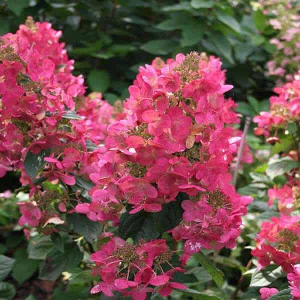 This paniculata hydrangea has large, white blooms that turn red and last until frost. This is a very compact, cold-hardy hydrangea. [Hydrangea]