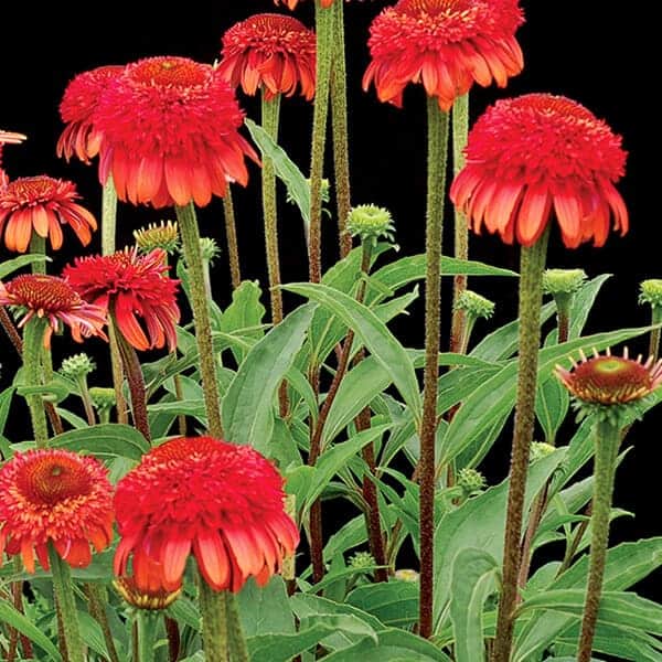The coneflowers in the Meteor series are known for their wonderful fragrance, vivid colors and long bloom time. This variety produces red flowers and blooms from summer to fall. [Echinacea]