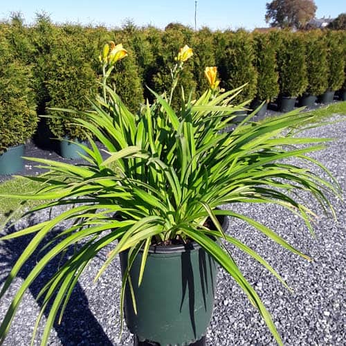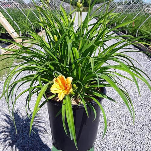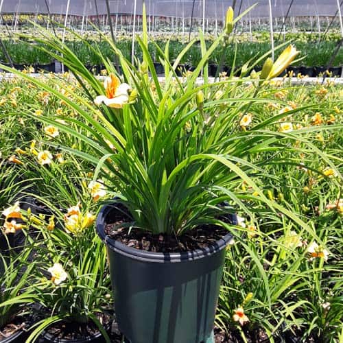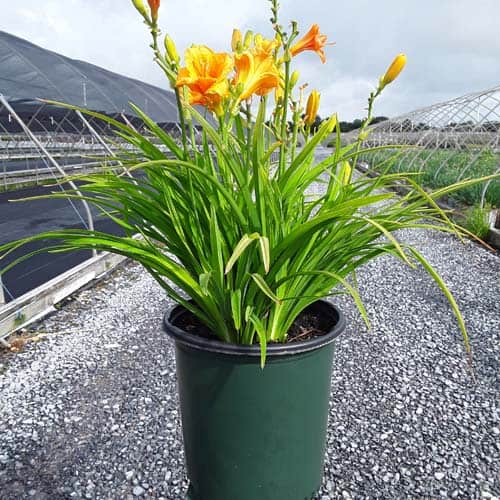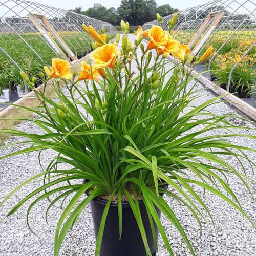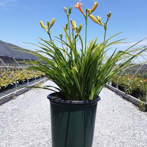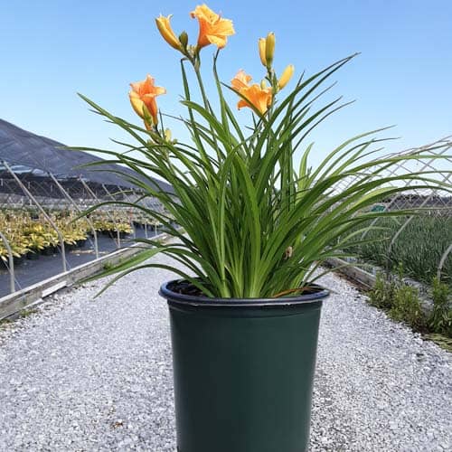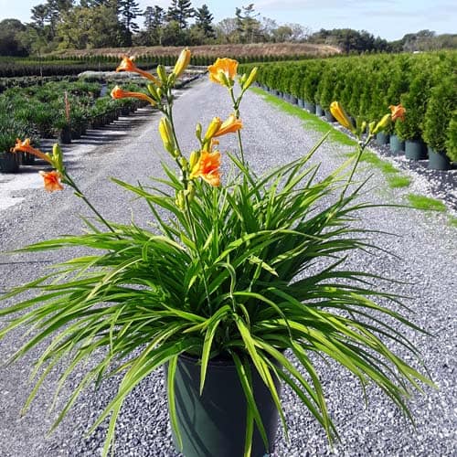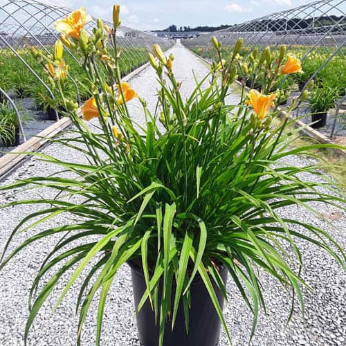 Gorgeous orange flowers bloom above bright green foliage from summer through the fall. It is an easy-care perennial and is a perfect addition to mixed borders or container gardens. [Hemerocallis]