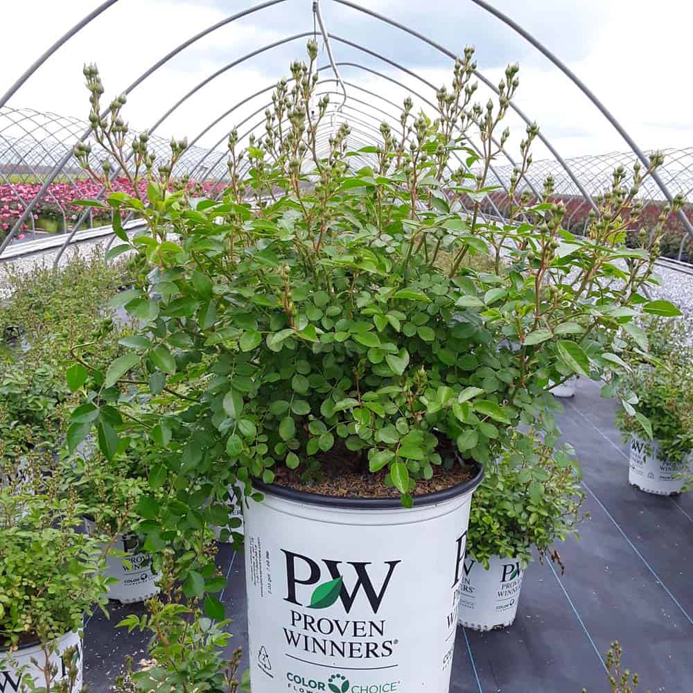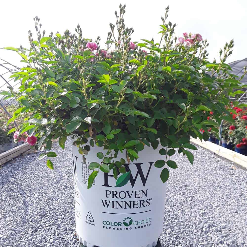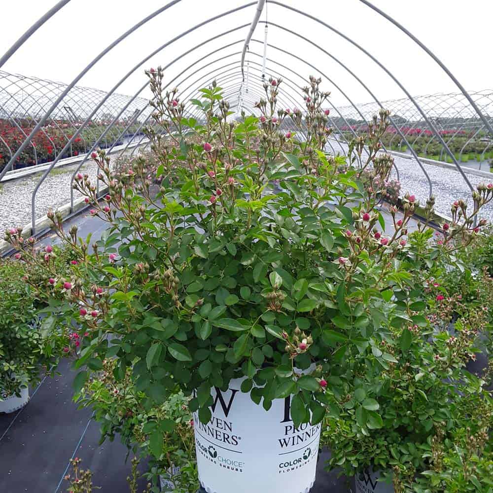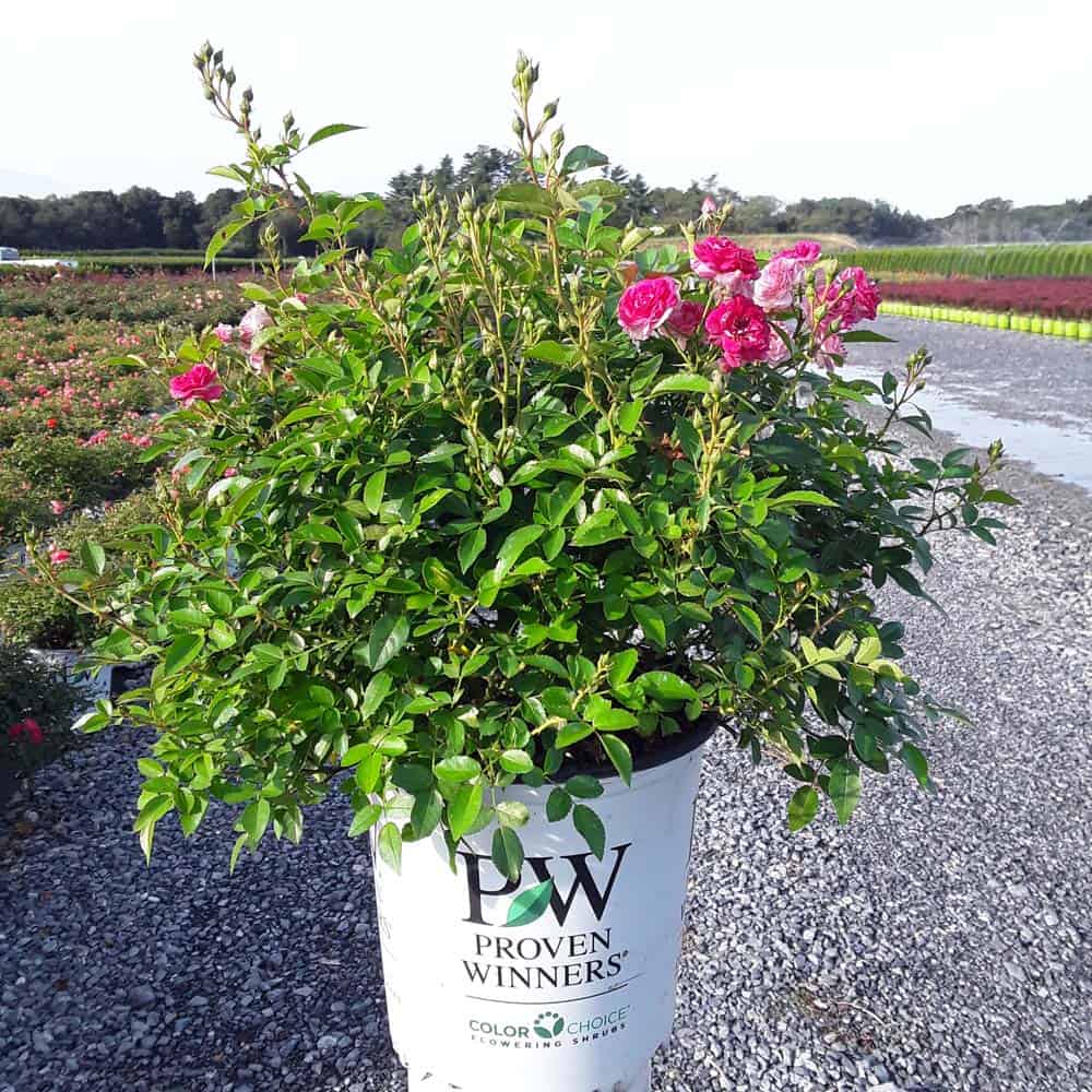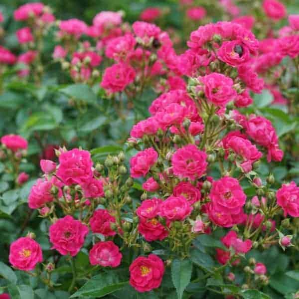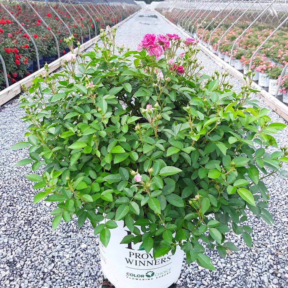 "Oso Easy Peasy® rose sends out continuous sprays of doubled blooms, each with the vivid, tropical hue of dragon fruit. Produces flowers continuously without deadheading, and as its award from the prestigious ARS attests, it exhibits outstanding disease resistance. Another triumph from celebrated rose breeder David Zlesak." Spring Meadow Nursery [Rosa]
