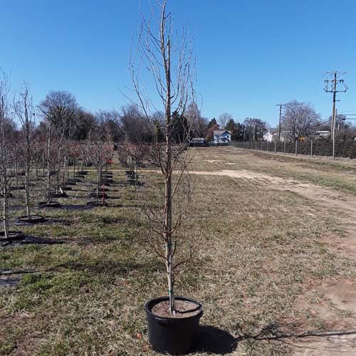 "Parkland Pillar® is a beautiful birch with a narrow, upright, dense habit. It boasts white bark and dense, dark green foliage that turns golden in late fall. This fast growing variety is suitable for gardens, screens, or boulevards. Tolerant of heat, drought, and alkaline soils, Parkland Pillar® is an excellent choice for urban landscapes. Its narrow form makes it perfect as an accent tree or it can be planted in multiples to form a privacy screen." -- First Editions