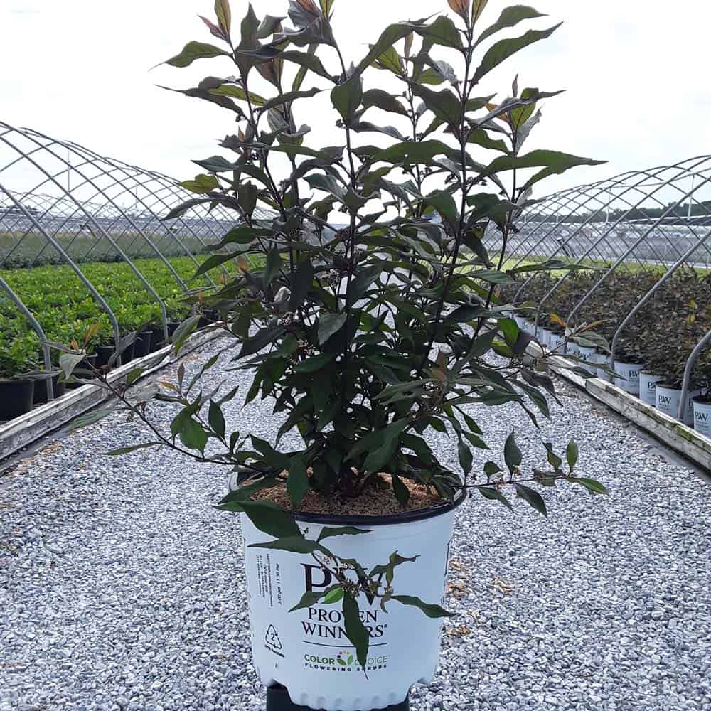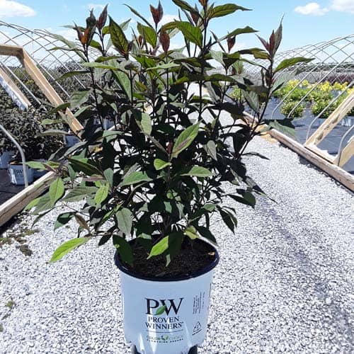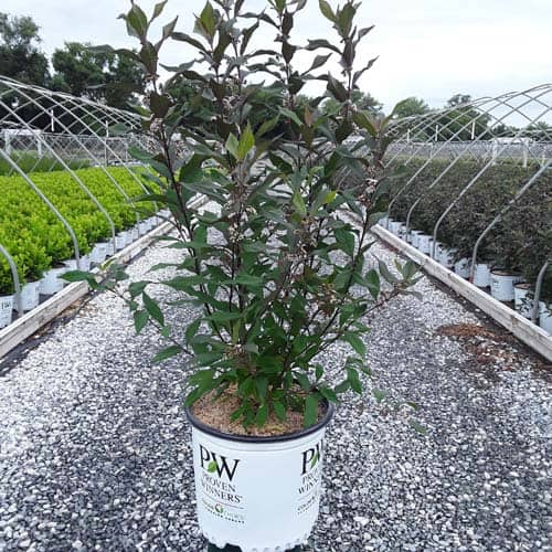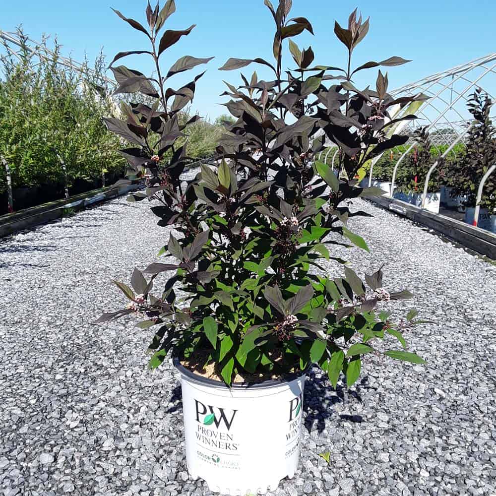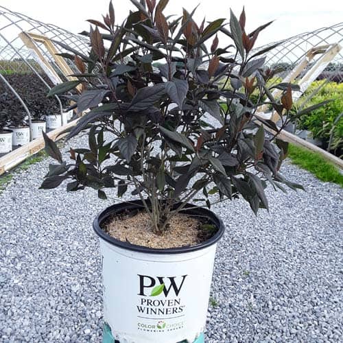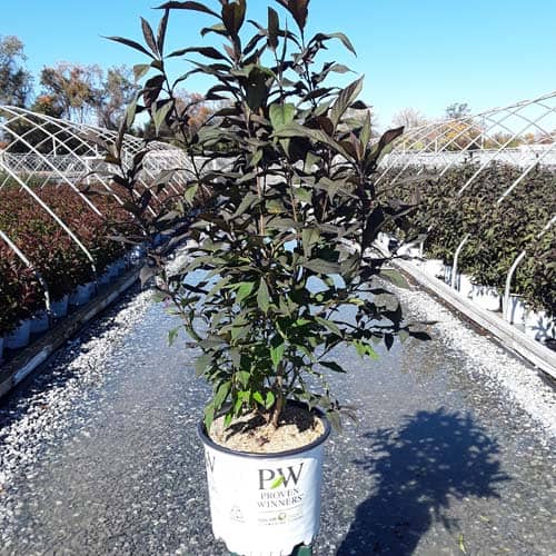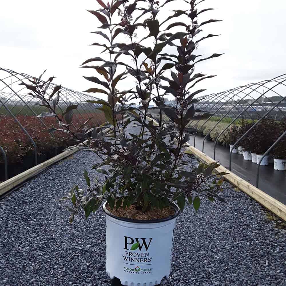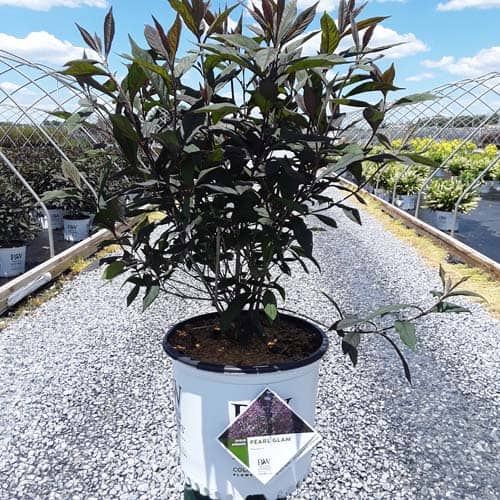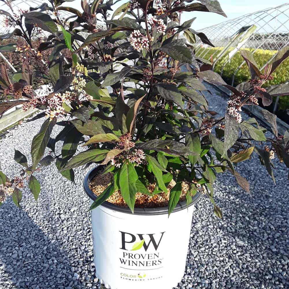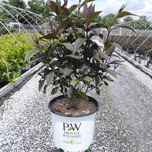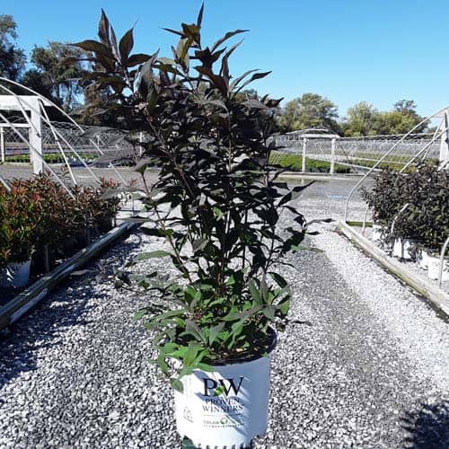 "A whole new look for callicarpa! No longer just planted for colorful fall fruit, this new hybrid variety has dark purple foliage to provide color all season. This vigorous, upright plant offers a unique look in the landscape or in containers. Developed by Dr. Tom Ranney of NCSU." -- Spring Meadows Nursery [Callicarpa]