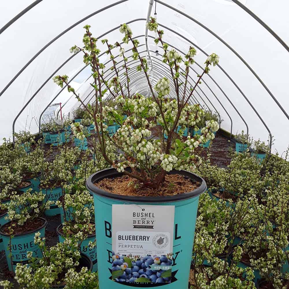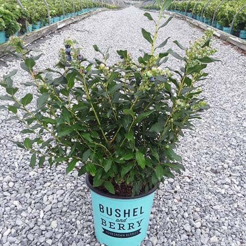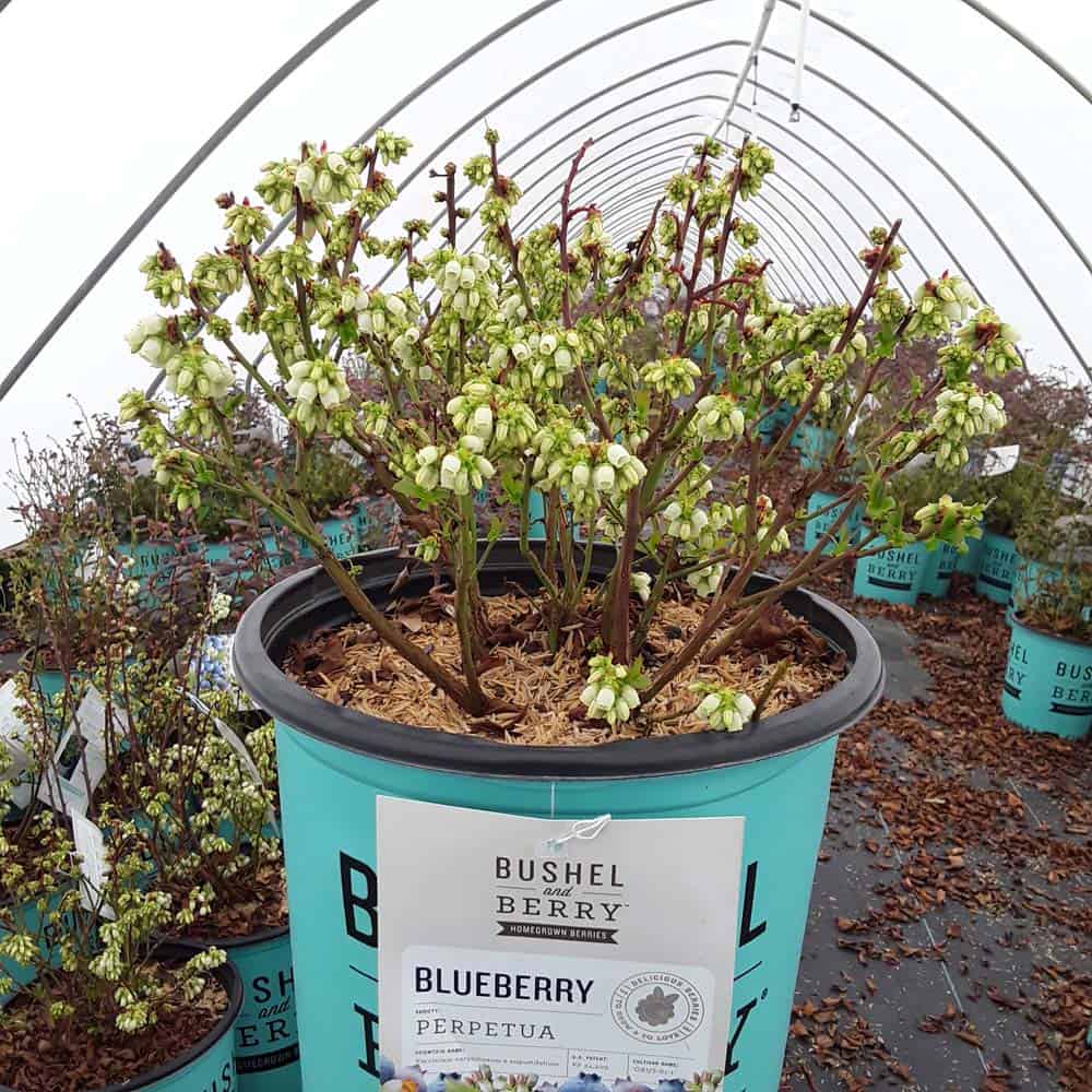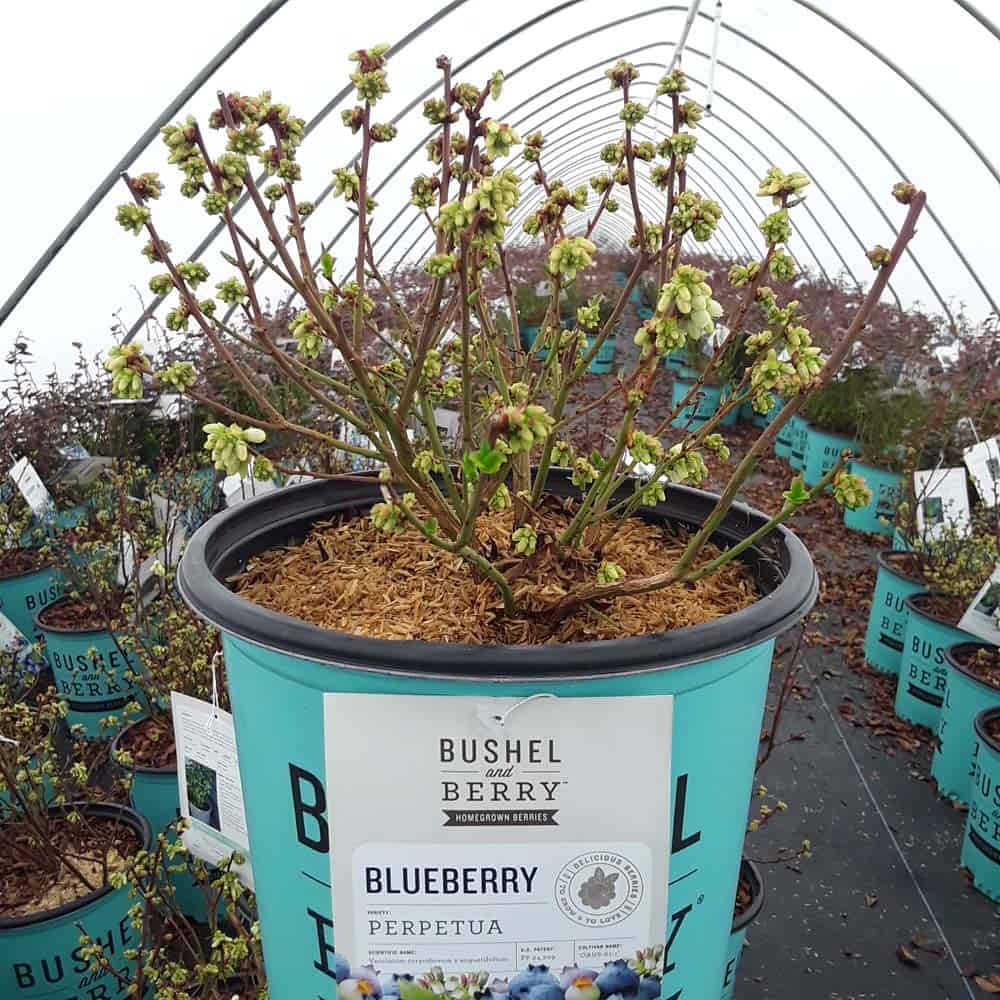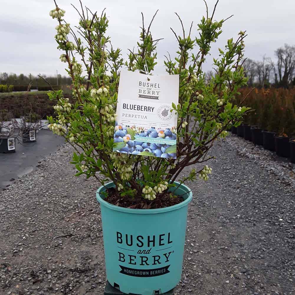 "Perpetua™ will give you two crops of sweet and delicious blueberries! The first fruit will appear in mid-summer and then the plant will flower and set fruit a second time in the fall. The leaves are dark green and will turn to deep reds and greens in the winter, making it a beautiful addition to any landscape." -- Bushel and Berry® [Vaccinium]
