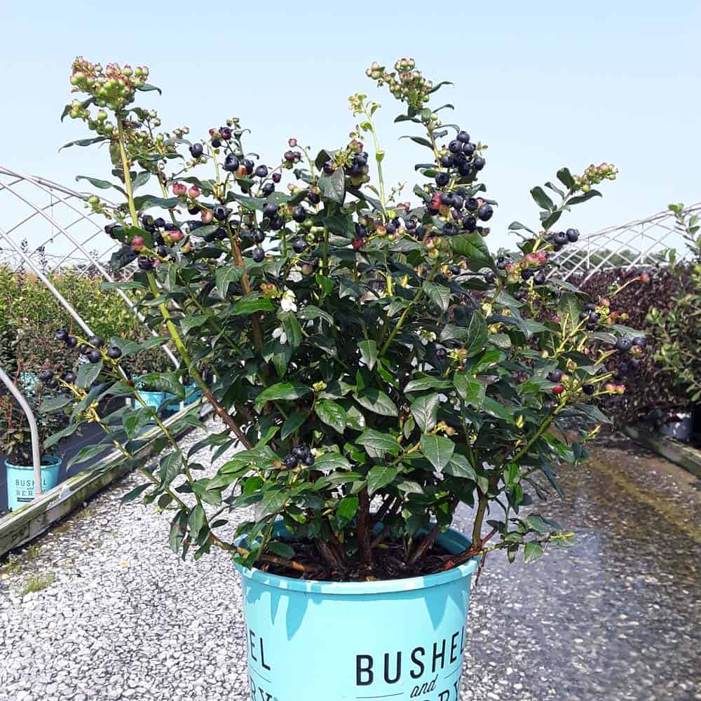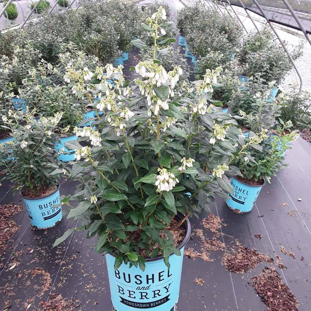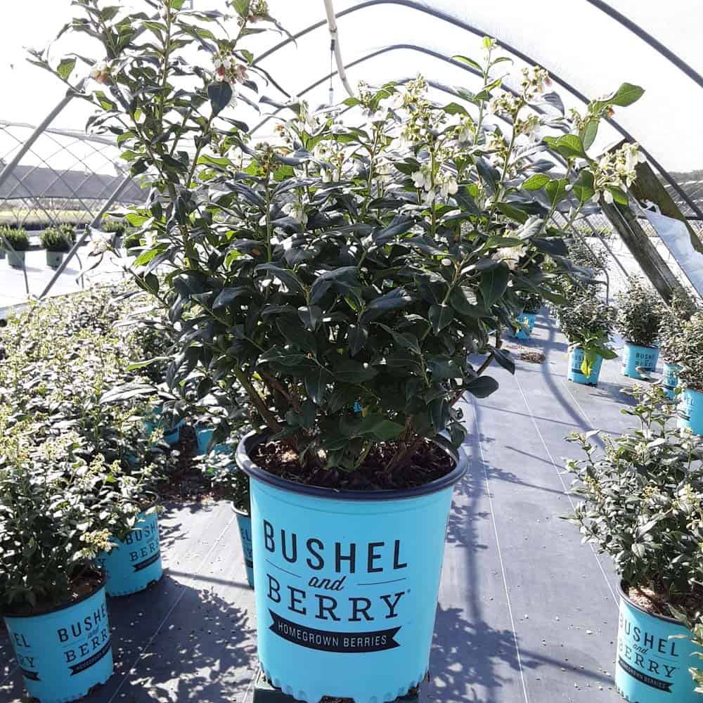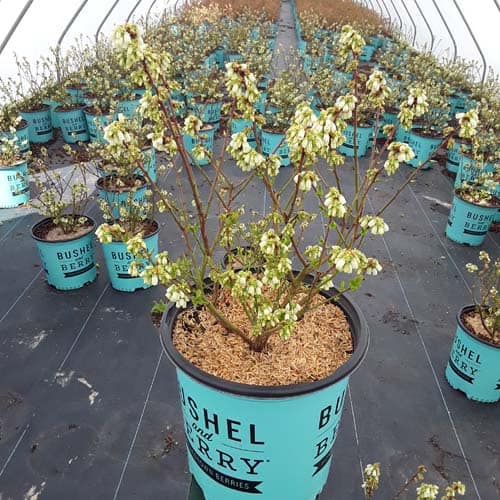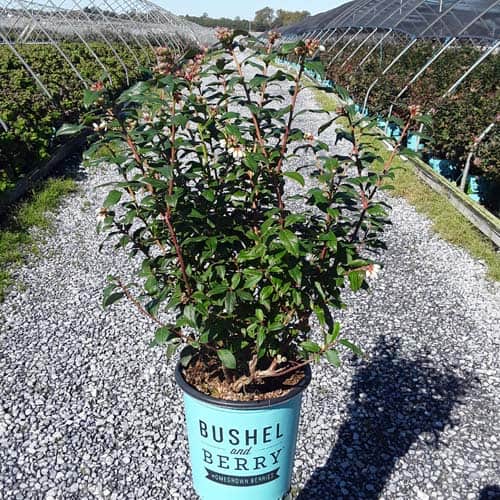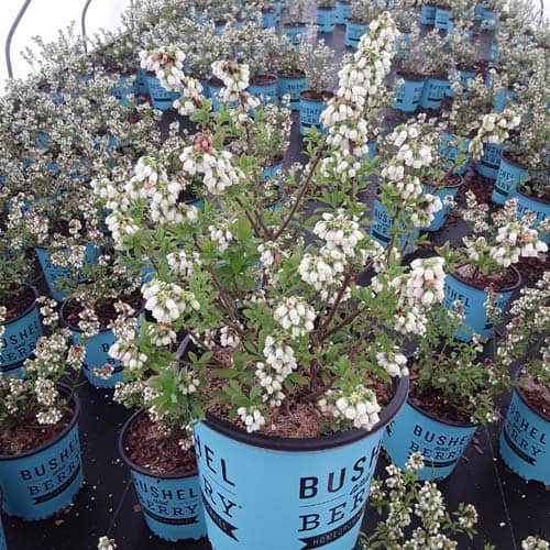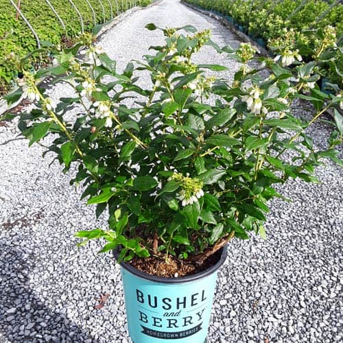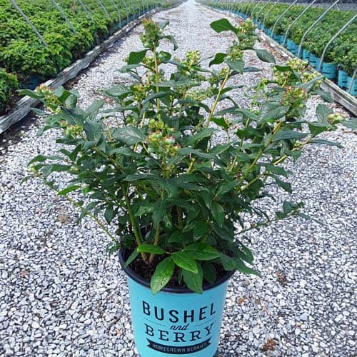 "Perpetua™ will give you two crops of sweet and delicious blueberries! The first fruit will appear in mid-summer and then the plant will flower and set fruit a second time in the fall. The leaves are dark green and will turn to deep reds and greens in the winter, making it a beautiful addition to any landscape." -- Bushel and Berry® [Vaccinium]