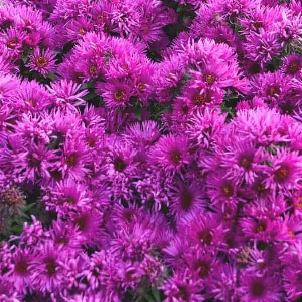 A North American native with bright, densely packed, fuchsia flowers that bloom in autumn. It is a very hardy perennial and grows to about 24"; attracts pollinators. [Aster]