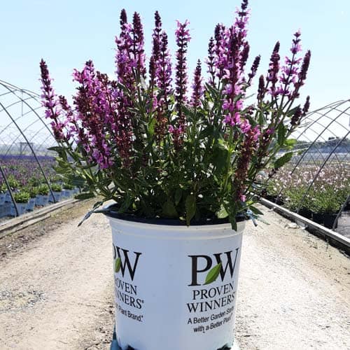 "Enjoy these flowers again and again throughout the summer with rebloom! Dark pink flowers are produced on darker pink calyxes on a perfectly rounded, dense and beautiful habit." Proven Winners [Salvia]