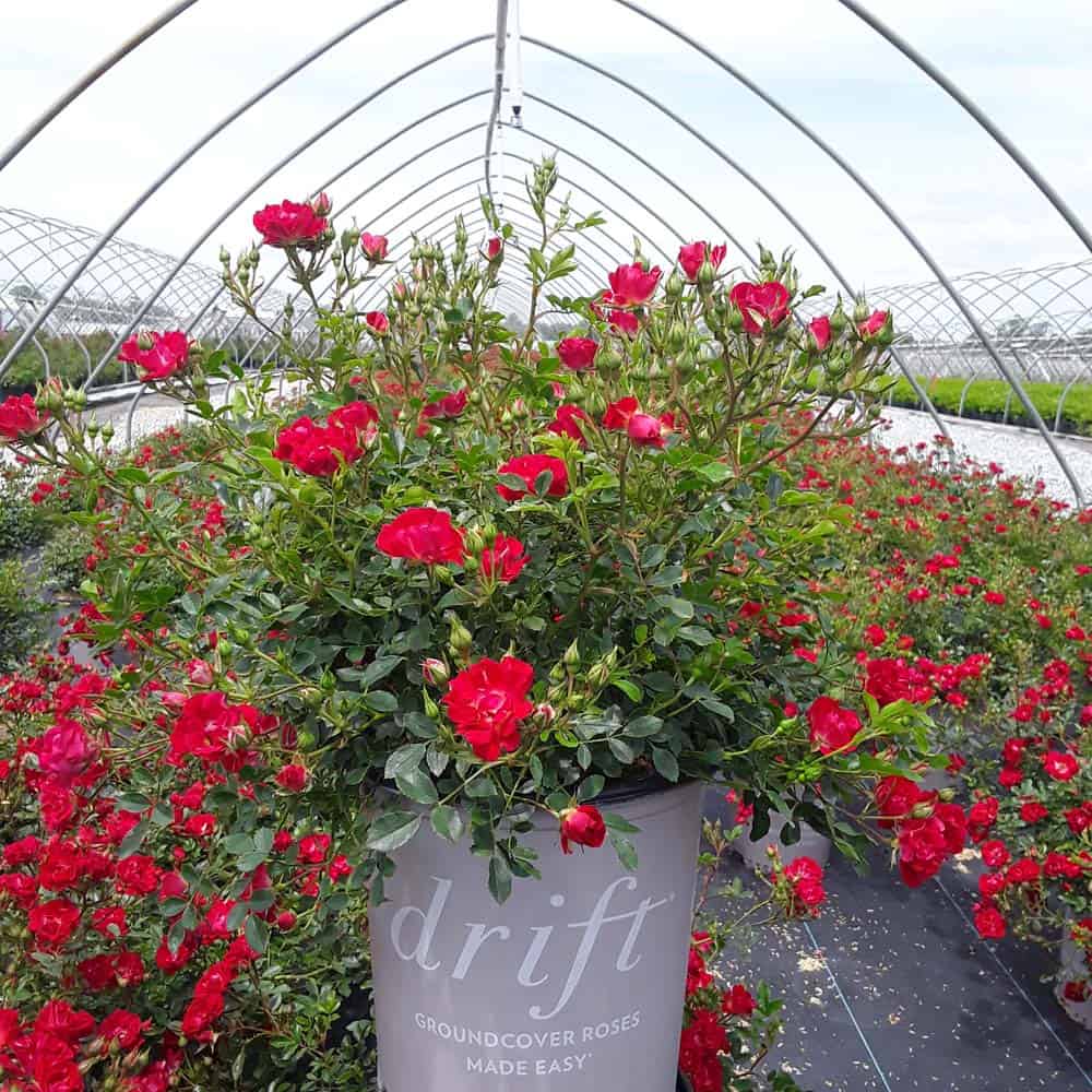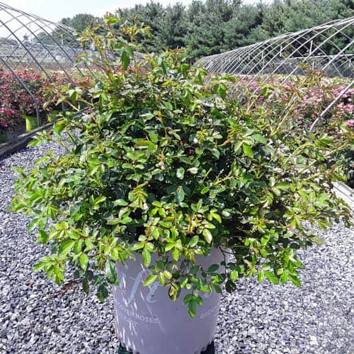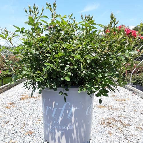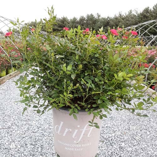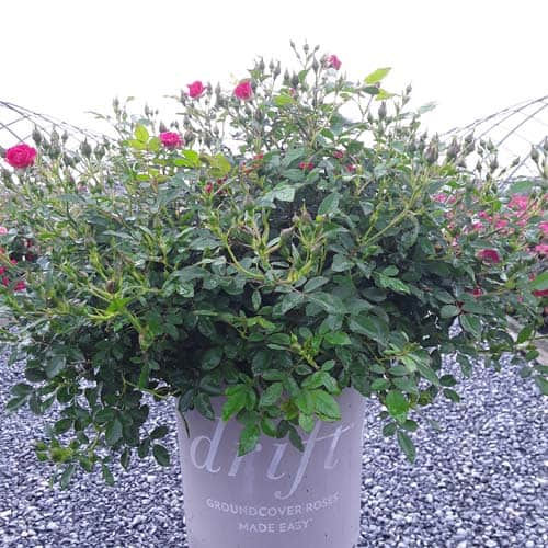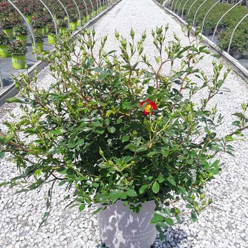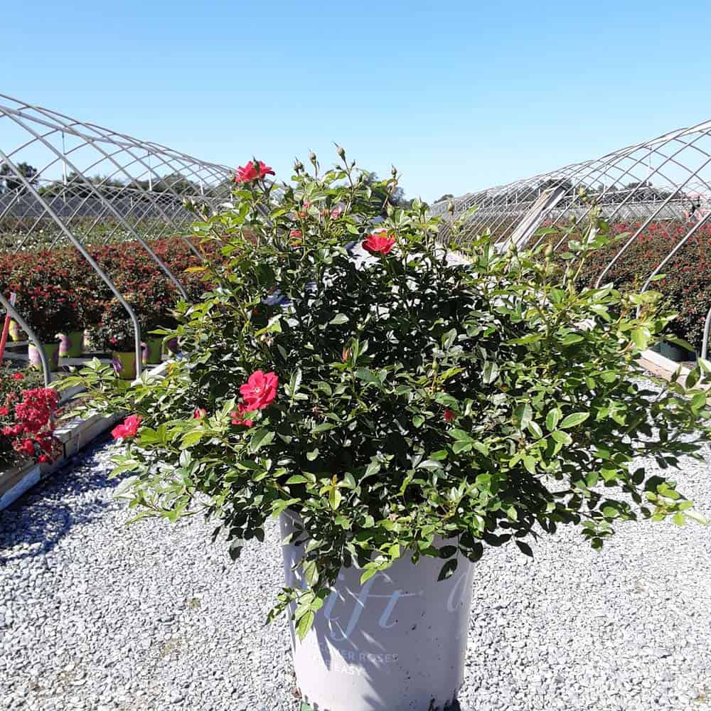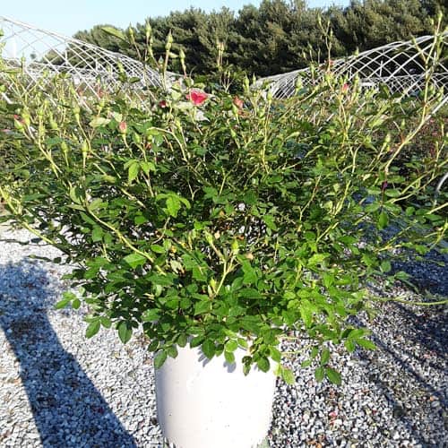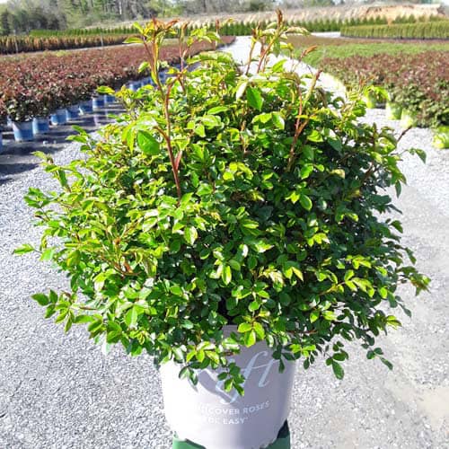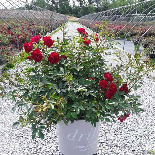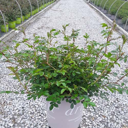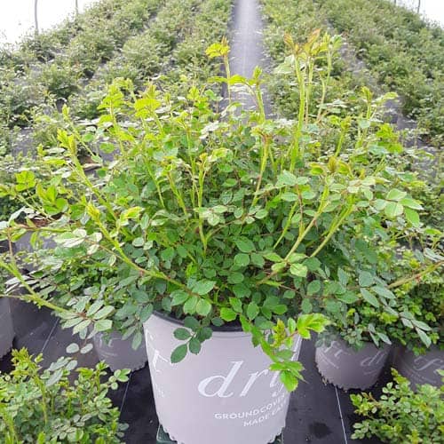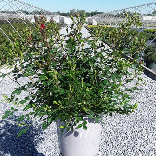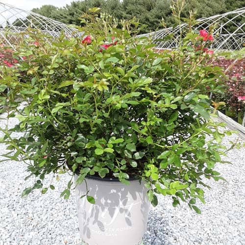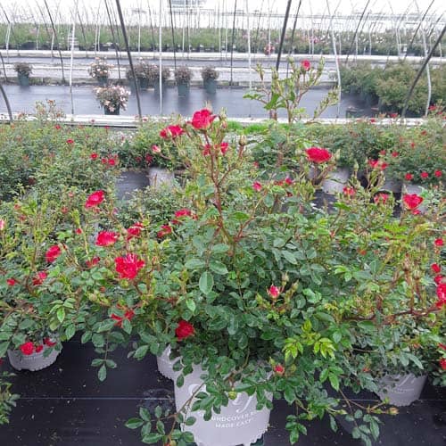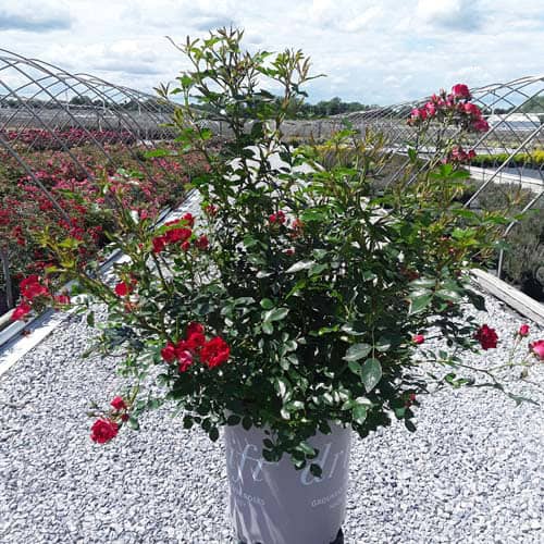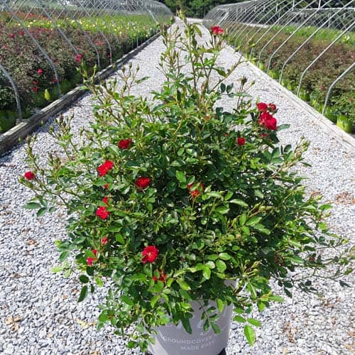 An excellent, low spreading rose that carries a profusion of delightful, small red blooms in flushes from late-spring to frost. Vigorous & easy to care for with very good disease resistance, this ground covering variety is perfect for smaller gardens, massing around established plants, in borders or alongside paths and walkways. [Rosa]