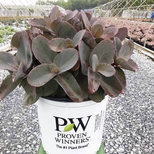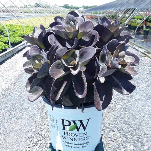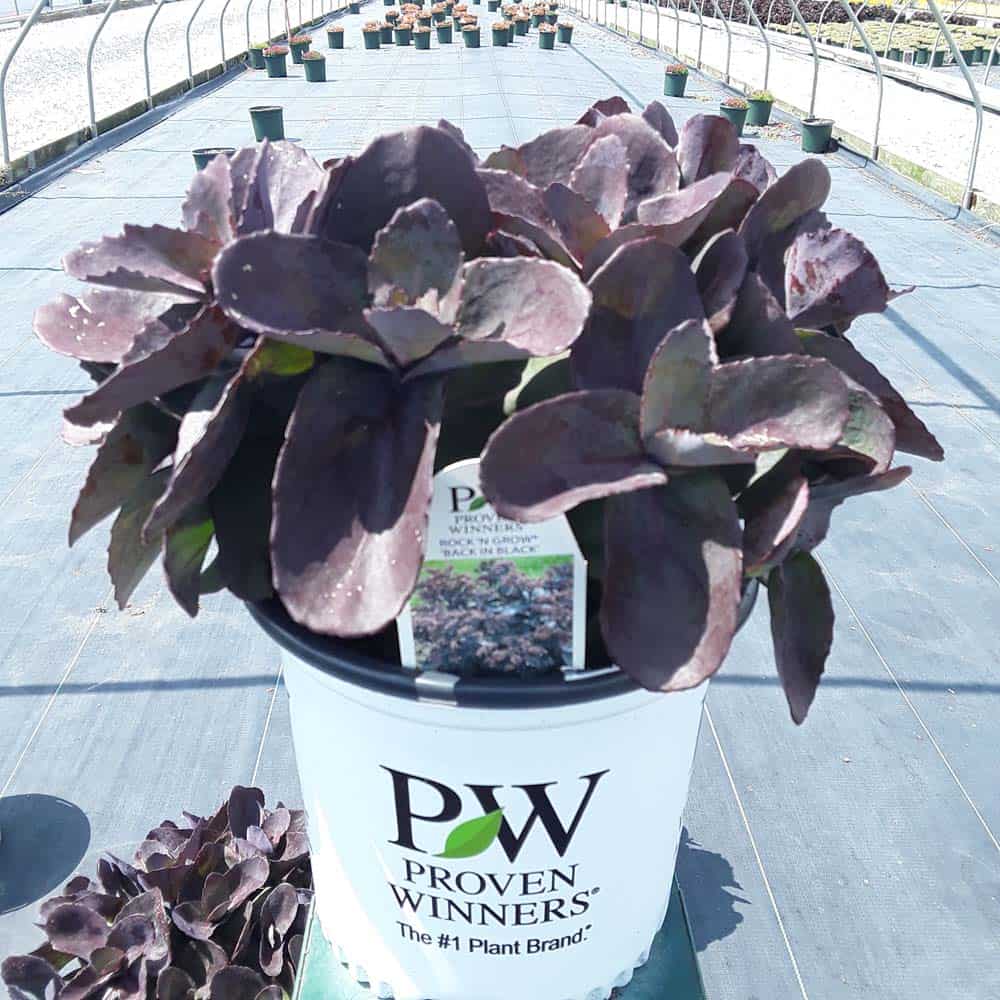 "New to the ROCK 'N GROW® collection comes an upright Sedum with near black leaves. Enjoy the dark leaf foliage throughout the summer, and when late summer rolls around, flowers with deep garnet red centers and cream petals will appear. Great for adding a dark color to the middle of the border!" Walters Gardens [Sedum]