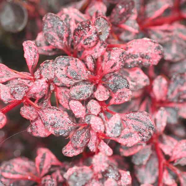 Easily grown, deciduous shrub. New foliage is rose-pink, mottled with deeper purple. Mature leaves are reddish-purple. Great hedge or specimen plant. [Berberis]