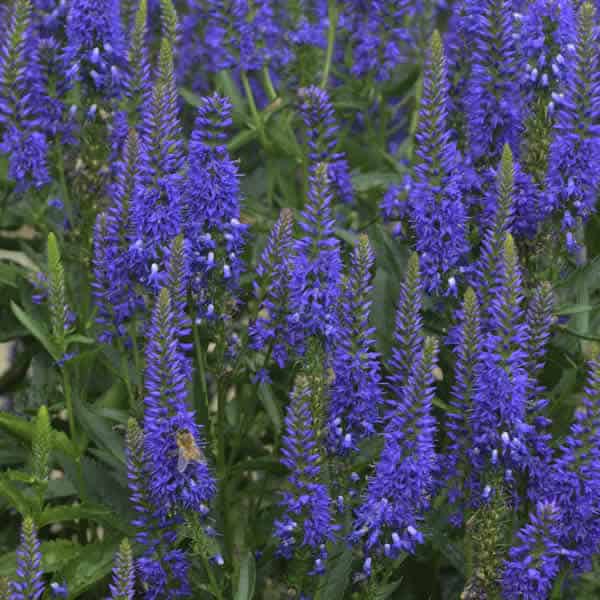 Violet-purple flowers resemble paintbrushes and showcase the dark green foliage. Attractive to butterflies and other pollinators. [Veronica]