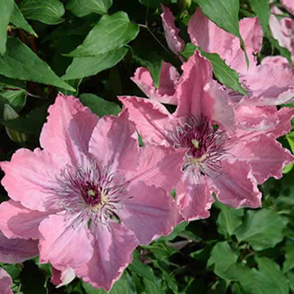 "This distinct, attractive pink almost seems to glow. The mass of flowers appear from late Spring until late Autumn. It produces these at the base of the plant and on new growth often producing a top to bottom flowering effect." Raymond Evison Clematis [Clematis]