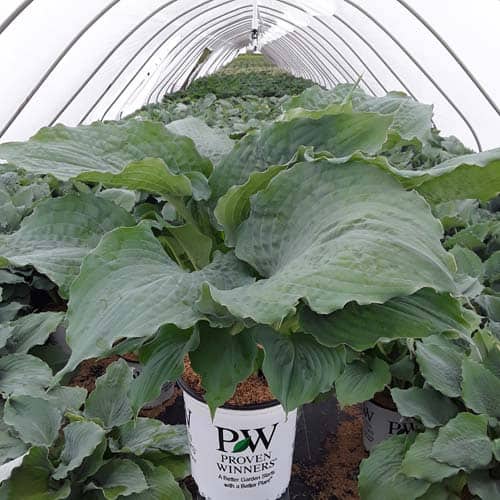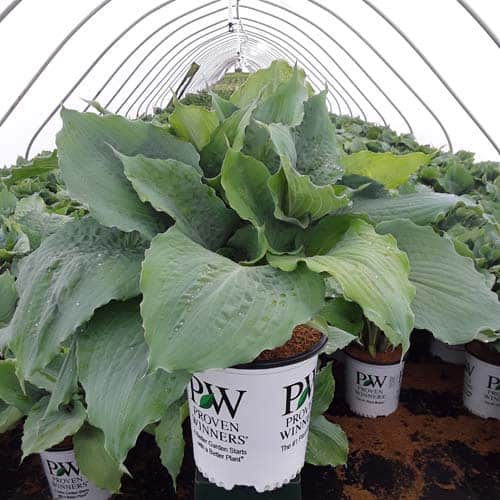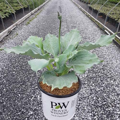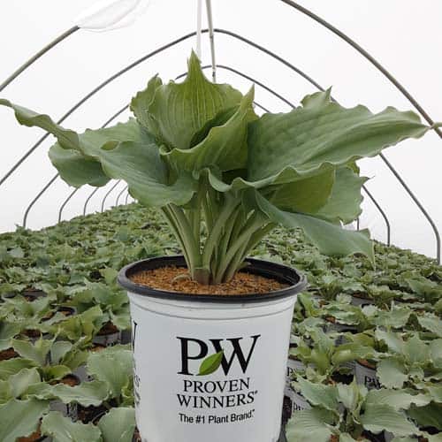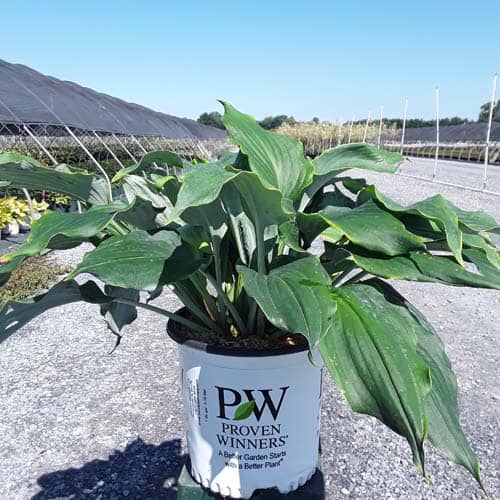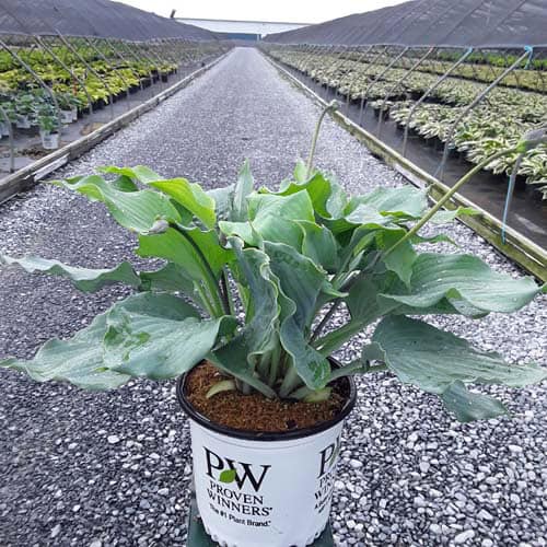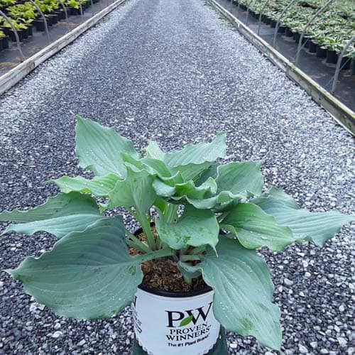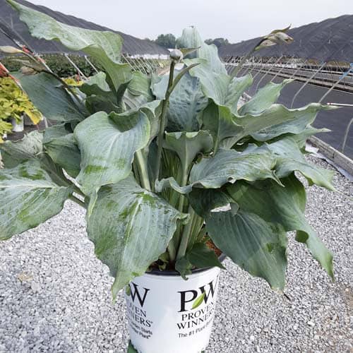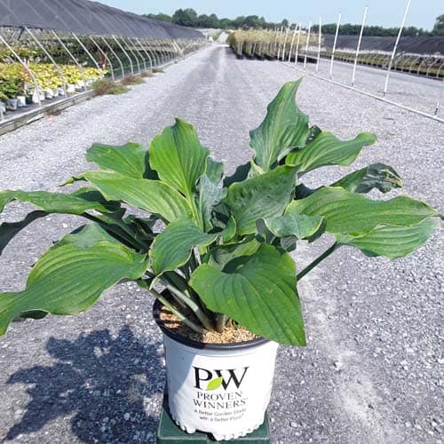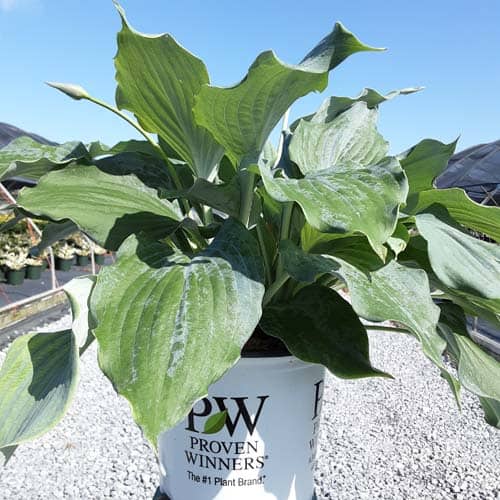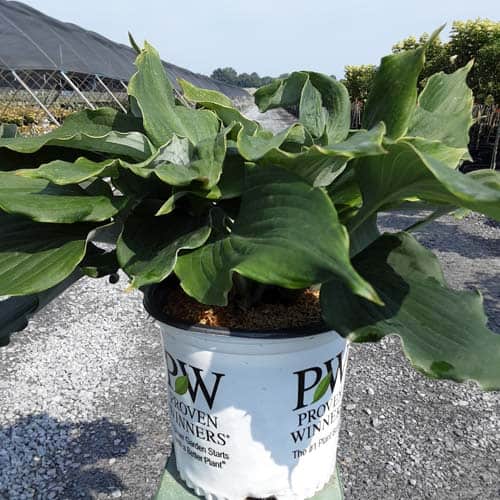 "Use this large blue hosta to add color to your shade garden! Attractive, heart-shaped, thick and heavily corrugated blue leaves have wavy margins. Pale lavender flowers." Proven Winners [Hosta]