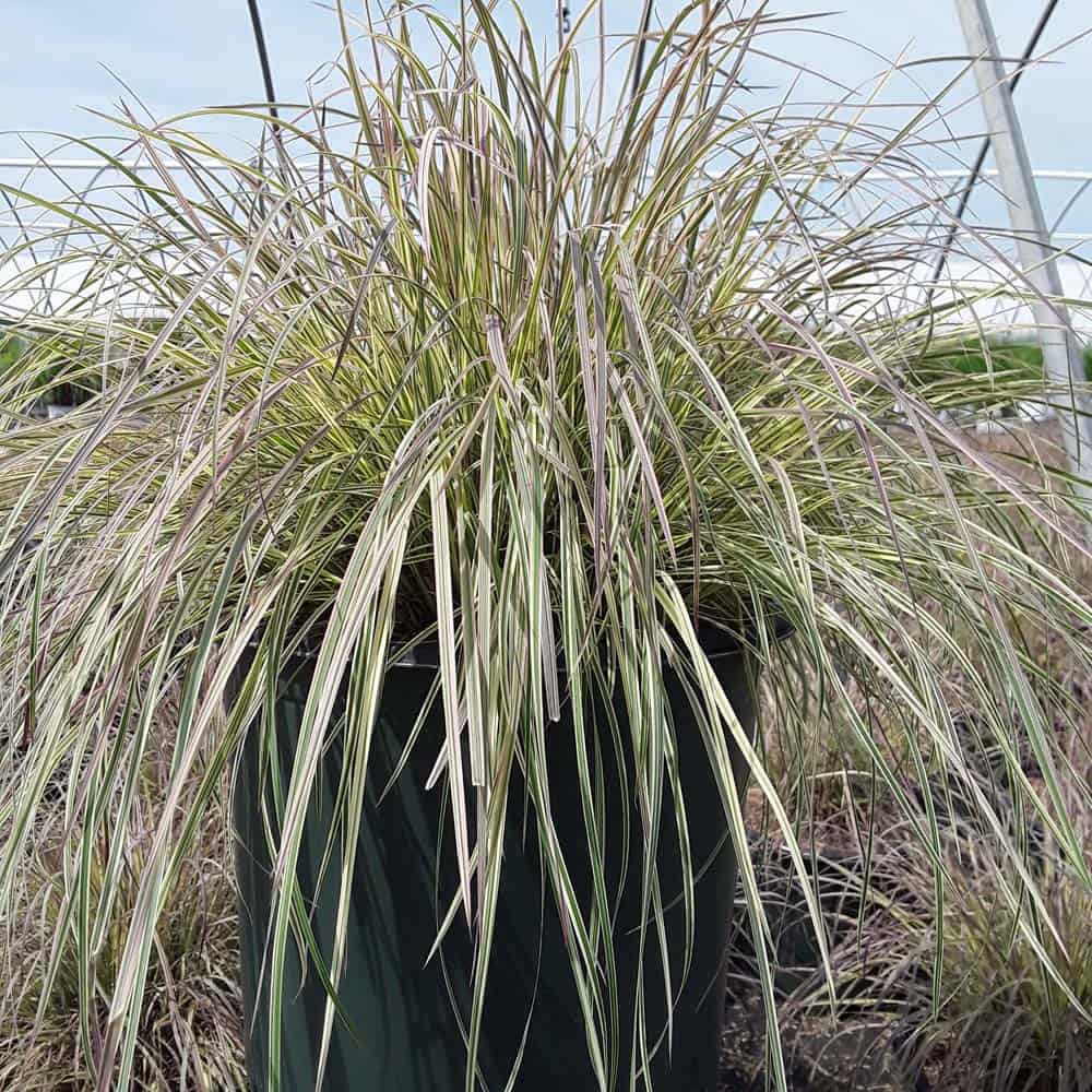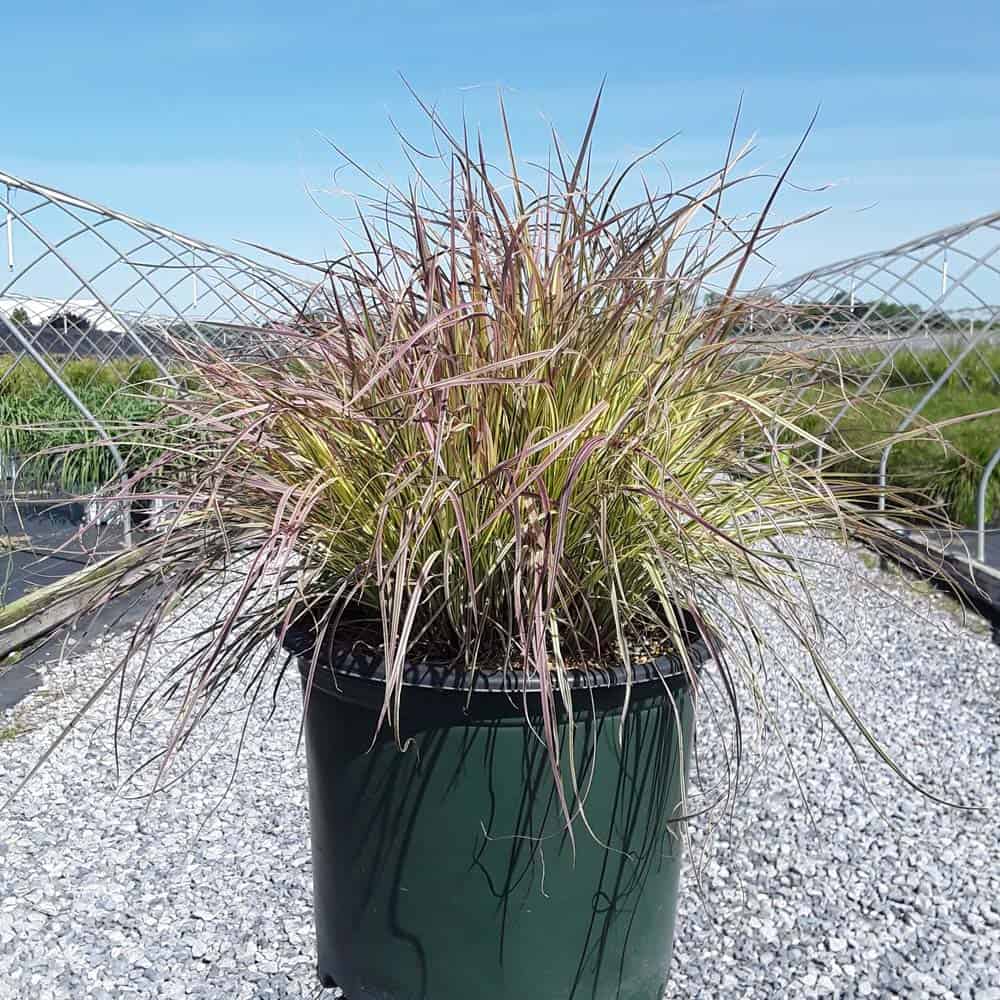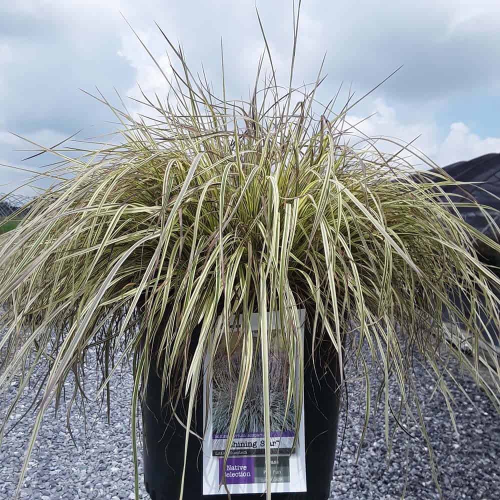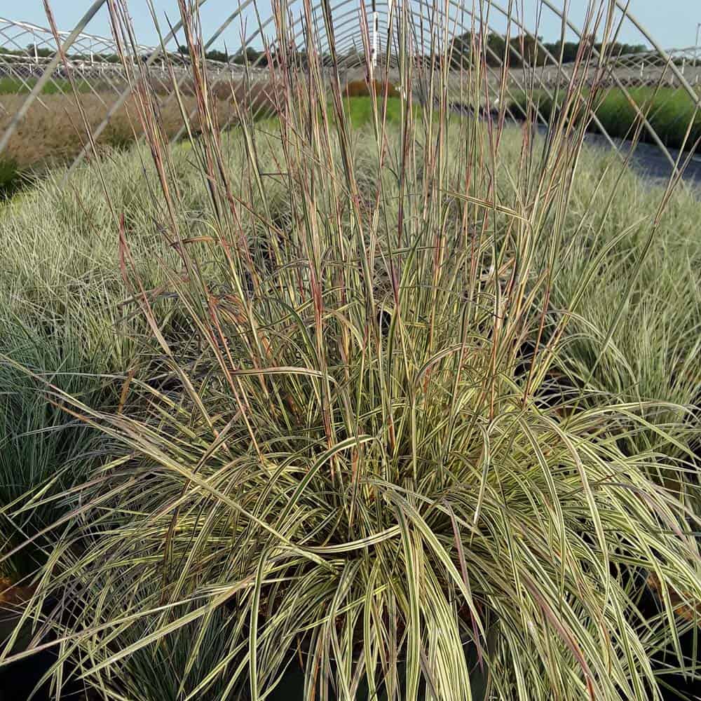 This is a new addition to the little bluestem selection of native ornamental grasses. It has green and creamy-white variegated foliage with a pale pink blush in spring and fall. Winter color darkens to burgundy. Mounding to about 18" with flowers spiking to 30", it is an eye-catching grass for borders or in a combination planter. [Schizachyarium]