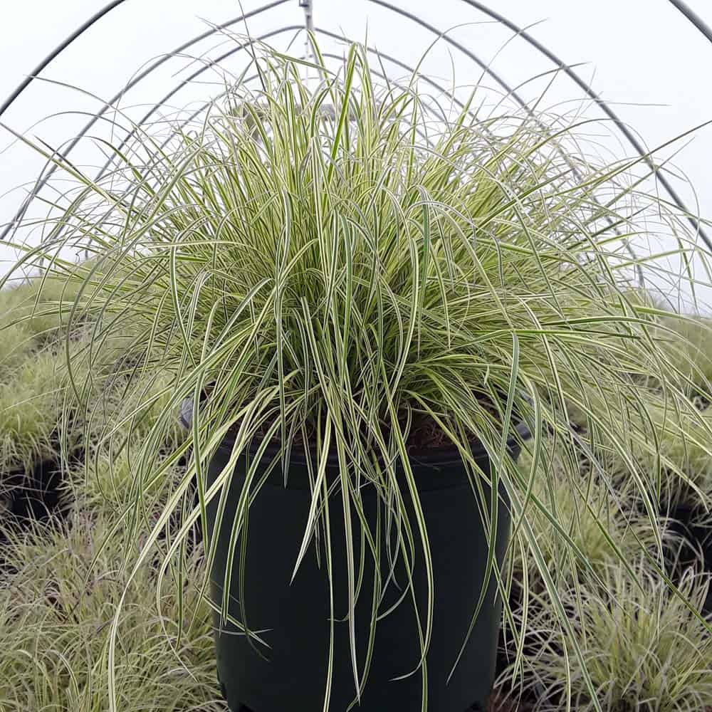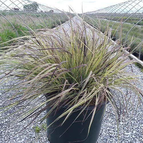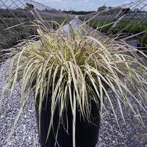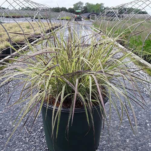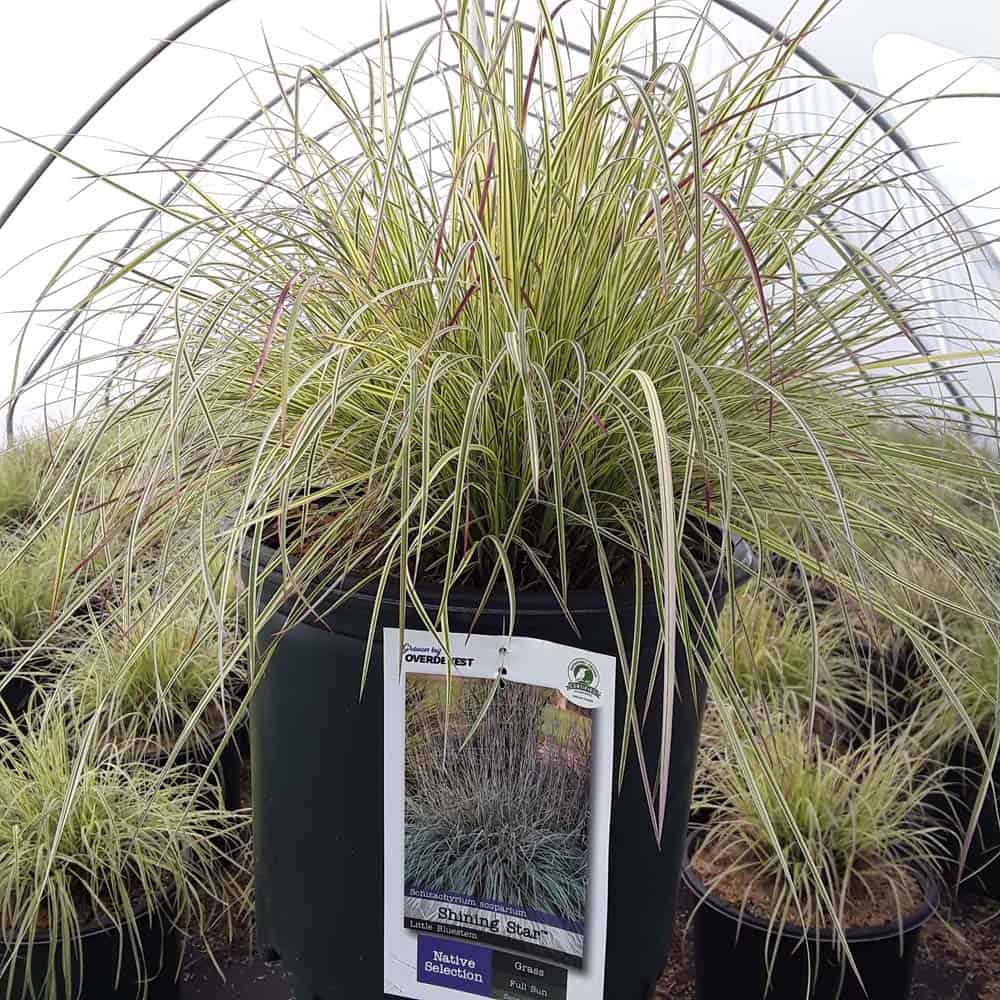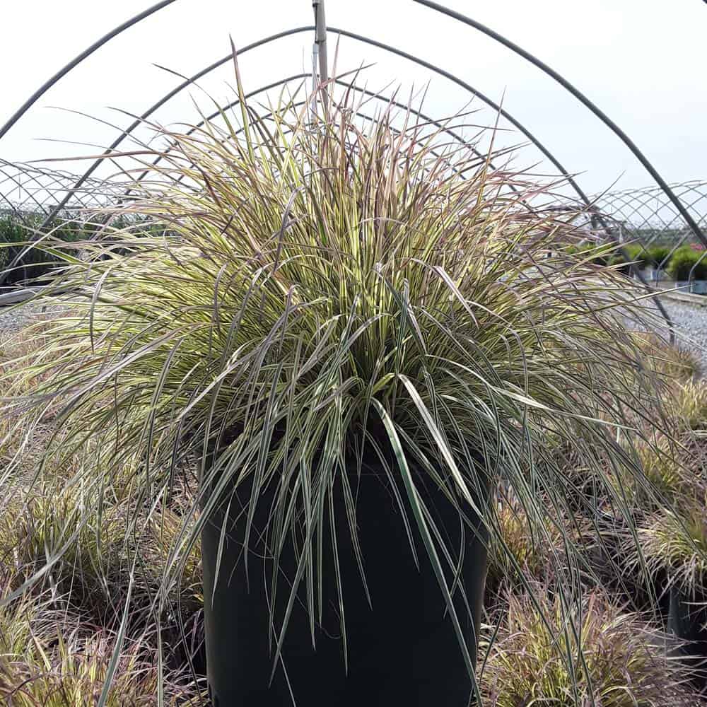 This is a new addition to the little bluestem selection of native ornamental grasses. It has green and creamy-white variegated foliage with a pale pink blush in spring and fall. Winter color darkens to burgundy. Mounding to about 18" with flowers spiking to 30", it is an eye-catching grass for borders or in a combination planter. [Schizachyarium]