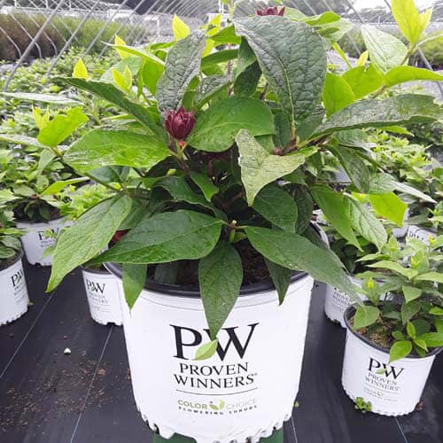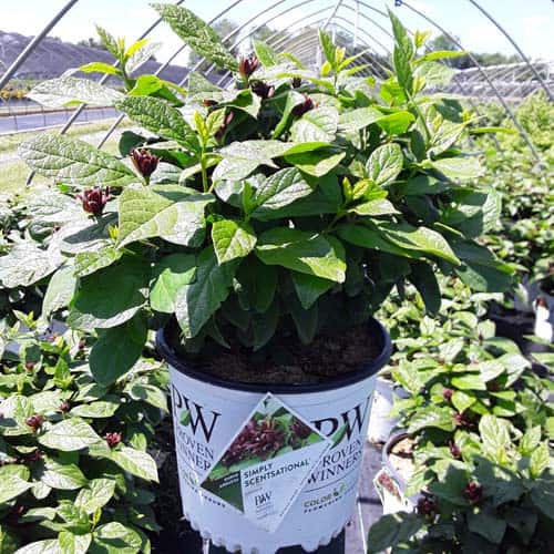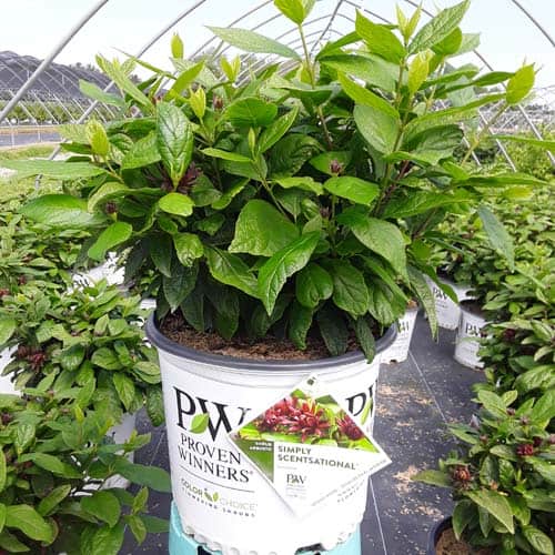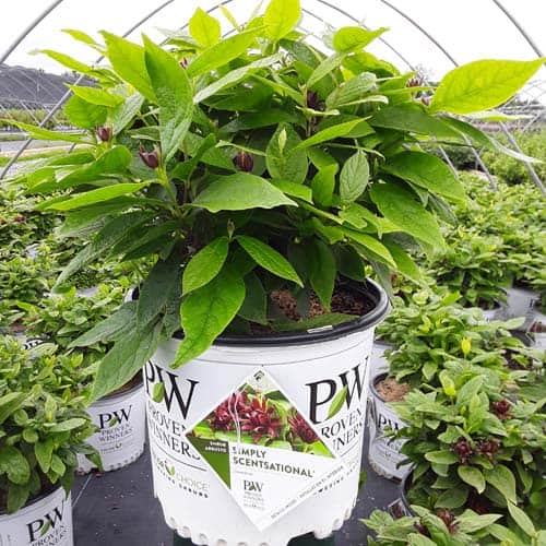 "The nicest smelling native on the market! Simply Scentsational® calycanthus is the result of thousands of sniffs and we're proud to say this is the most intriguing scent you'll find in any garden. Debate amongst your friends and relatives whether it's melon, banana, strawberry, or even Juicy Fruit gum that your nose is picking up. And while you're at it, you can admire its gorgeous velvety magnolia-like flowers." - Proven Winners [Calycanthus]