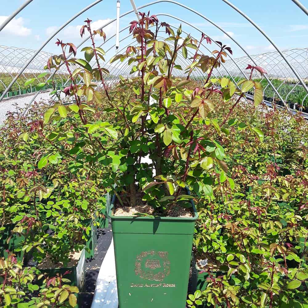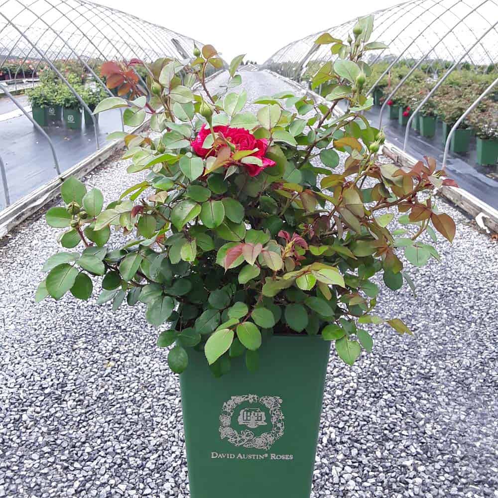 A striking David Austin® selection with large, bright crimson blooms that are beautifully formed and packed with petals intertwined at the center of each bloom. Flowering in flushes during the growing season the blooms bend over slightly with their weight, to give an elegant effect. There is a pleasing Old Rose fragrance and they make a lovely choice for cutting too. [Rosa]