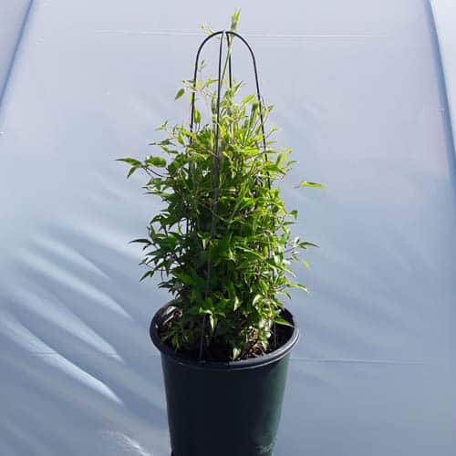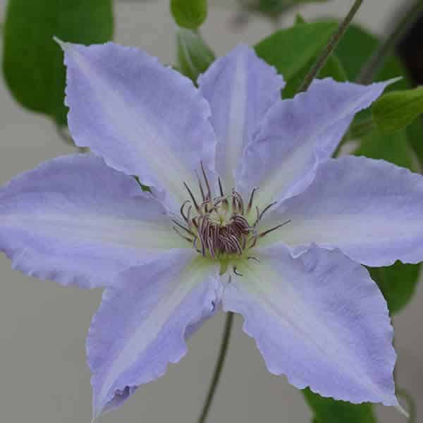 "An exceptional and attractive free flowering plant which is great for the smaller garden due to its compact habit. Tranquilité's subtle colors make it a superb plant for growing in a shaded area such as a north facing wall or in a container in a shaded outdoor eating area, patio or deck." Raymond Evison Clematis [Clematis]