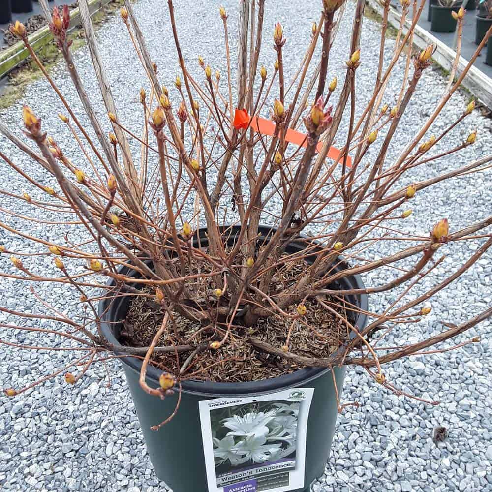 A vigorous, mid-sized, deciduous azalea with showy, dome-shaped clusters of fragrant, white, trumpet-shaped flowers that bloom late in the spring, its fragrant flowers attract butterflies and hummingbirds. Its glossy, mid-green leaves are tinged with bronze all season before changing to burgundy-red in the fall. It is exceptionally cold hardy and is native to the eastern U.S. [Azalea]
