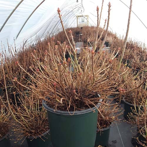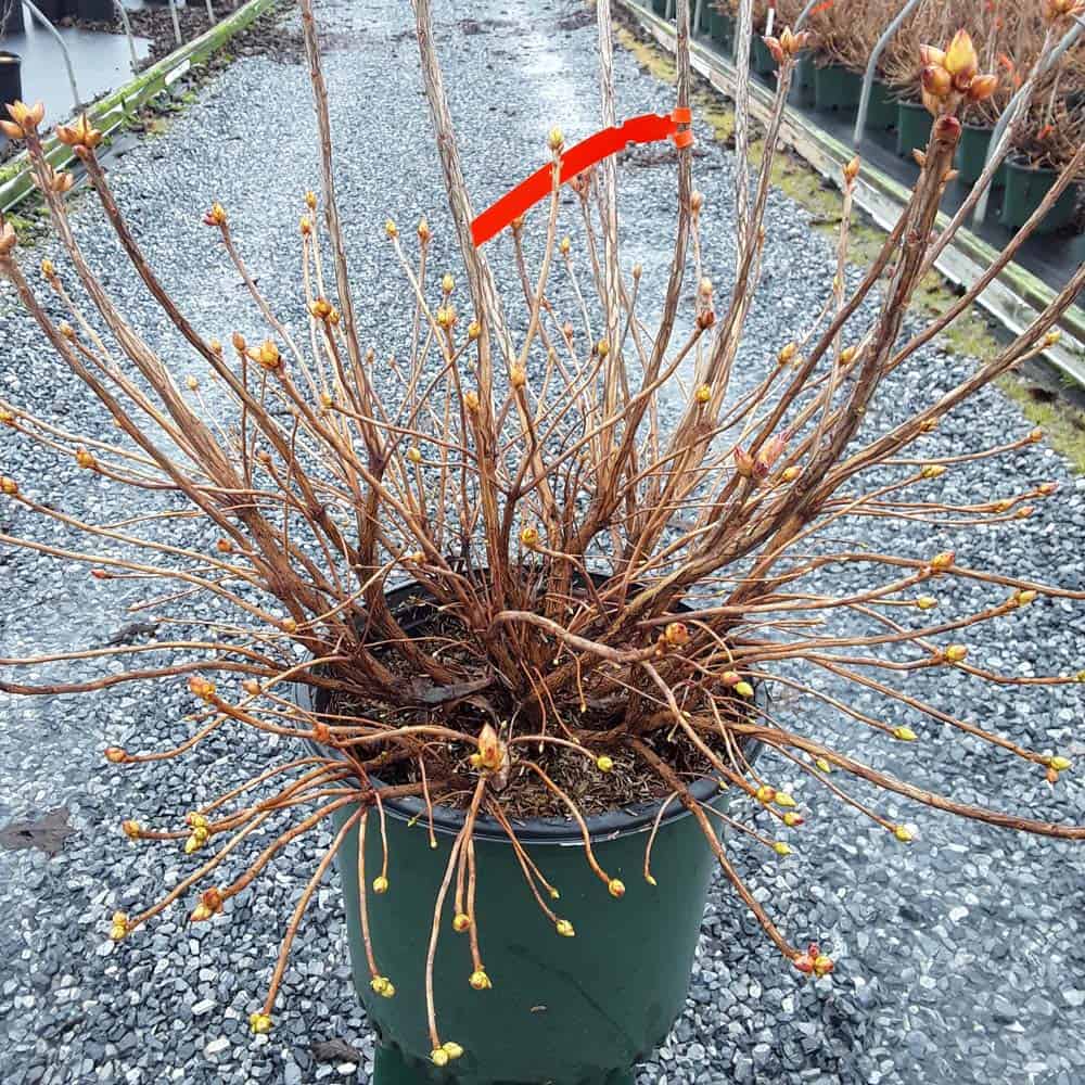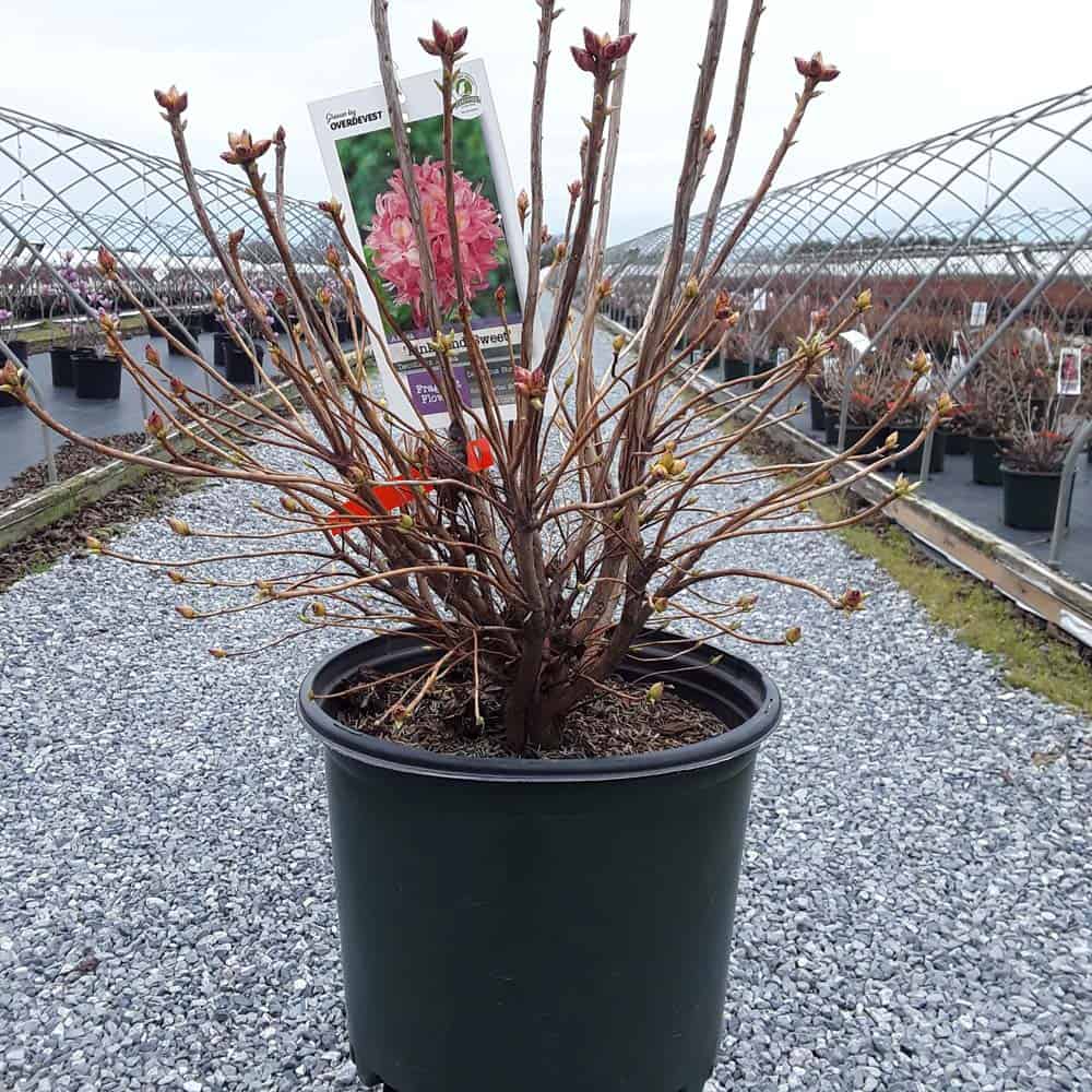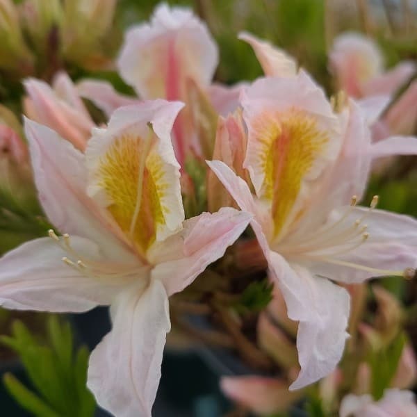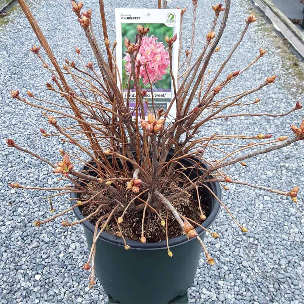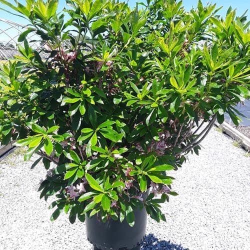 Pink and Sweet Azalea is blanketed in stunning clusters of fragrant, pink, trumpet-shaped flowers with a yellow flare at the ends of the branches that show in late spring before the leaves appear. The glossy, dark green, narrow leaves turn an outstanding red in the fall. [Azalea]
