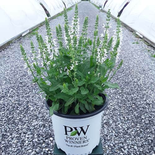 "Enjoy these flowers again and again throughout the summer with rebloom! White flowers are produced on a perfectly rounded, dense and beautiful habit." Proven Winners [Salvia]