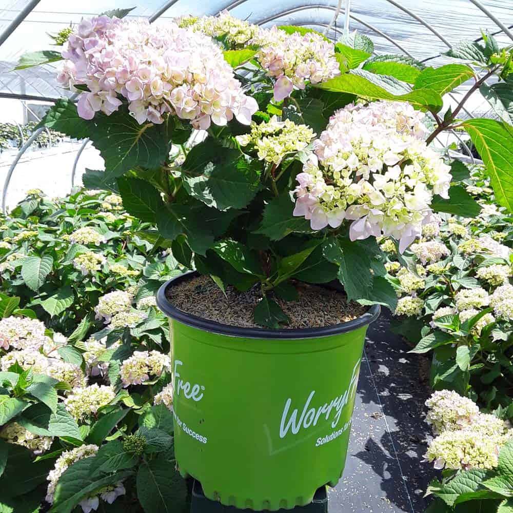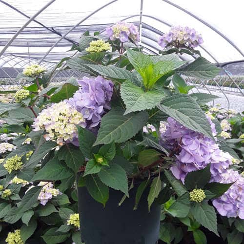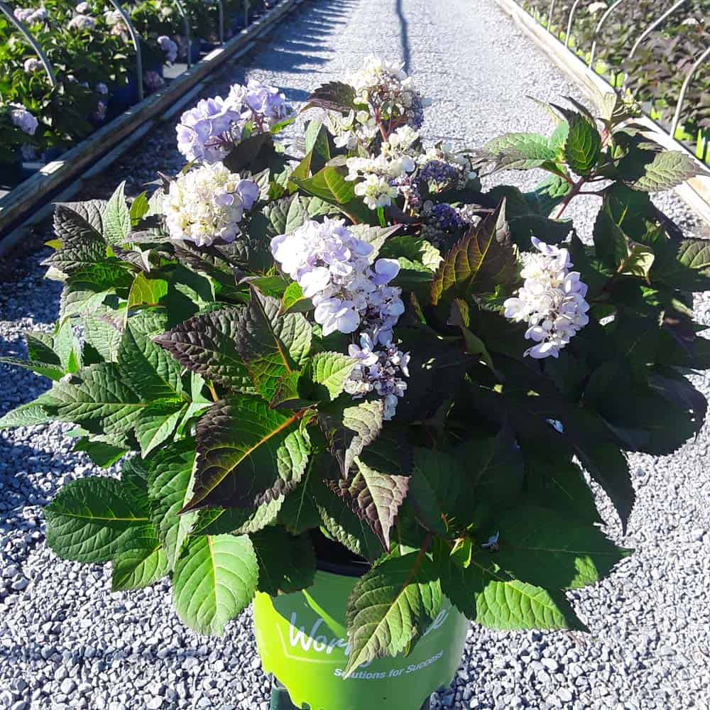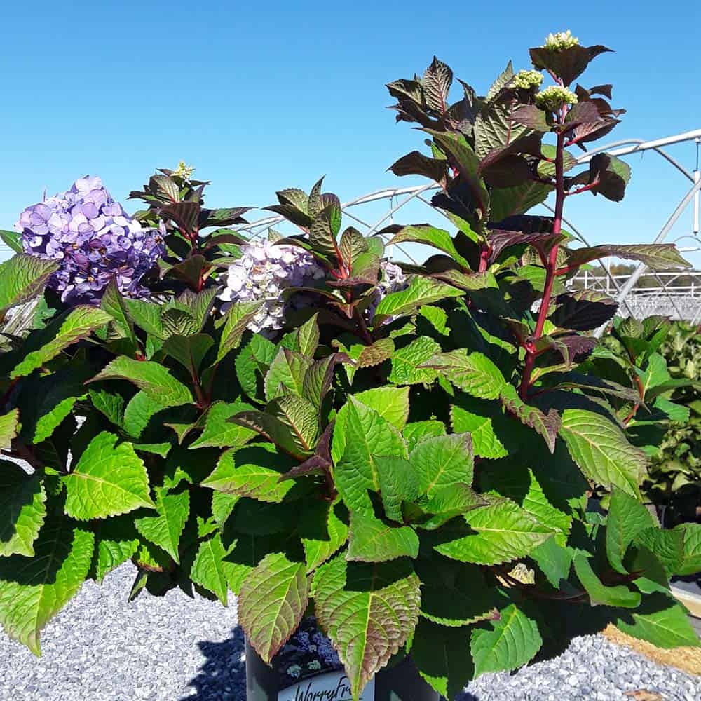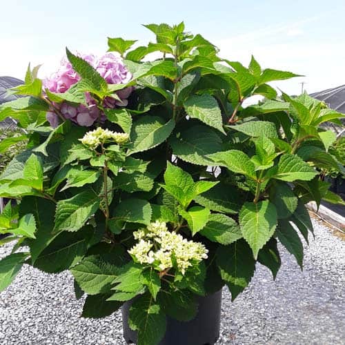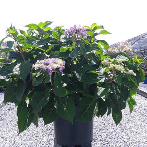 Selected by Dr. Michael Dirr, this hydrangea is a heavy blooming sport of Endless Summer® Twist-n-Shout®. It carries its bountiful blooms above sturdy stems and lush green foliage. The flowers are a mix of deep pink, purple, and blue and are re-blooming. A new introduction. [Hydrangea]