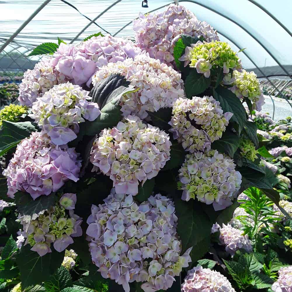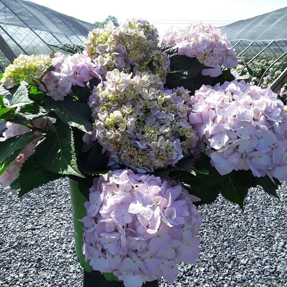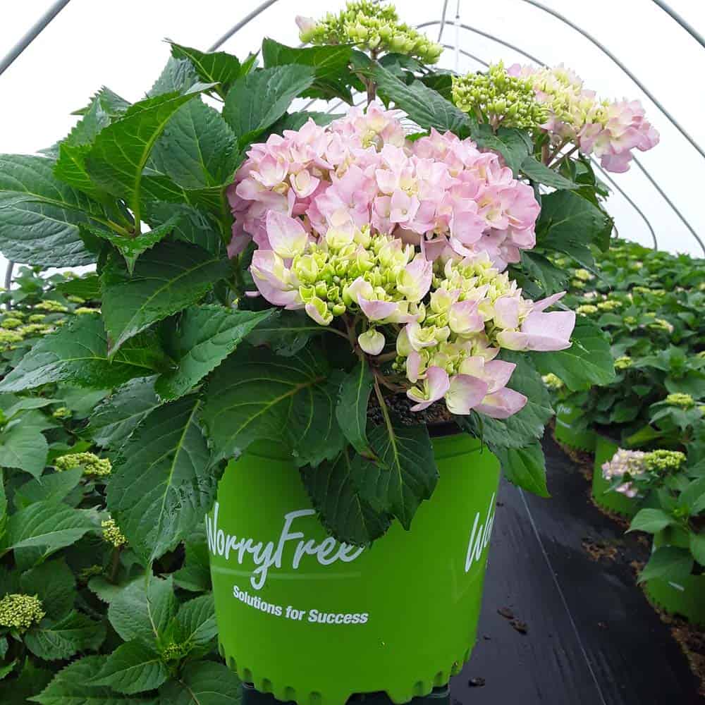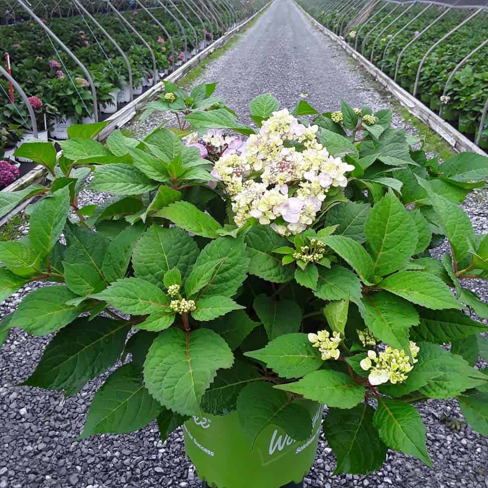 Selected by Dr. Michael Dirr, this hydrangea is a heavy blooming sport of Endless Summer® Twist-n-Shout®. It carries its bountiful blooms above sturdy stems and lush green foliage. The flowers are a mix of deep pink, purple, and blue and are re-blooming. A new introduction. [Hydrangea]