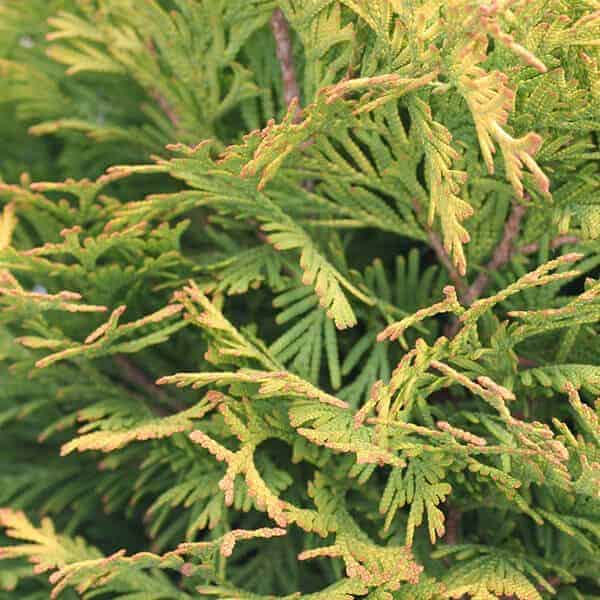This is a slow growing, upright pyramidal evergreen with yellow-orange young growth that matures to green. It is a narrow growing plant which makes it ideal for smaller spaces. [Thuja]